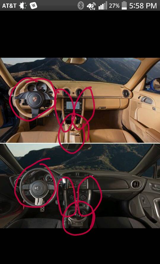 No, I'm not insinuating anything... I'm saying that they did copy parts of it. Evidence says they did. Human eyes with 20/20 vision say they did. THIS IS NOT A BAD THING. Even in the articles that I referenced, they note that the cars are eerily similar in design. The knee pad area on the sides of the center stack is an absolute copy of the Cayman's. I park my Cayman and BRZ next to each other and I can attest to the similarities. I look at and/or drive both of them daily. Do you?