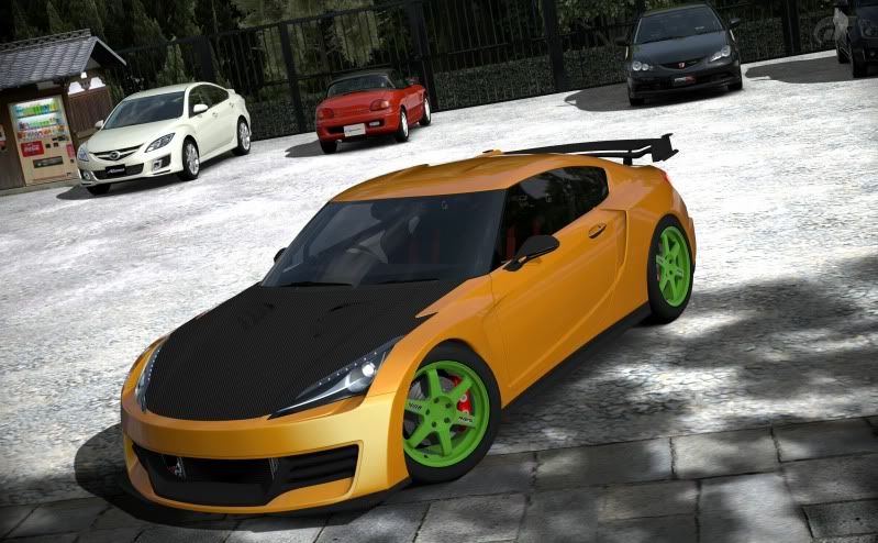 Now im going to open the flood gates http://img638.imageshack.us/img638/8...0hprocket1.jpg http://img685.imageshack.us/img685/3189/flyingskunk.jpg So i have a history of giving cars too much power and not slowing down for bumps in the road :party0030: http://img508.imageshack.us/img508/6792/abarth.jpg It's always fun to play around in a little driftmobile :burnrubber: http://img195.imageshack.us/img195/774/yellowboss.jpg Not gonna lie, i only have this because it looks like a boss. Needs to be way more powerful than anything else on the track to even have a chance. http://img716.imageshack.us/img716/9...inebicycle.jpg I like my designs clean, that my number on the front. Gotta watch those rumble strips :bonk: http://img855.imageshack.us/img855/8...therainbow.jpg And this was just an awesome coincidence i managed to catch before i started pulling away, a rainbow of gt1 cars :thumbsup: |