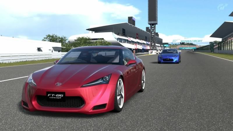 So i just got my game back from my friend, and i decided to buy the closest car to the ft86 as i could, ended up being the 85 Trueno. Then i continued to pursue my awesomely bad habit of super tuning everything with all of my cars, this one ended up weighing 2011lbs with 537hp and 429ft/lbs. It has so much more power than the lightweight body can contain, and in my first race, with no assists, i couldn't get an ounce of traction, it wanted to live sideways. Even though this wouldnt normally be a problem :thumbup: i needed it to drive in the class it was dropped into, so i put TC on. Anyways it's qualified to drive in the S class, so it is up against bugatti veyrons, saleen s7, mercedes clk-gtr, etc. http://img857.imageshack.us/img857/9753/truenojump.jpg Theres my trueno, catching and jumping over a saleen s7... how about that :P gonna go for a ring time later tonight, i hope those are valid in that other thread |