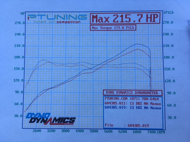 Just got off the phone with Ptuning, 201HP on pump gas 215HP on E85. Picking her up tomorrow morning.