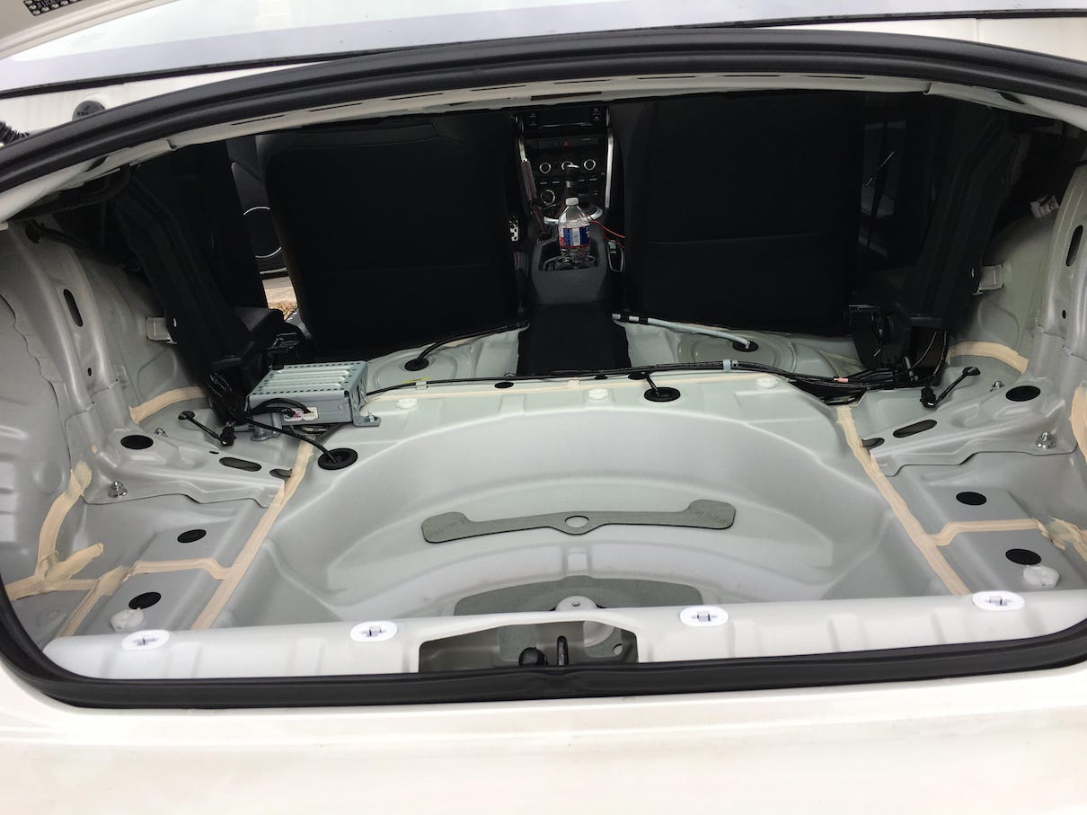 Installation is pretty simple. One component I added was to use an Instapak Quick RT #80 under each rear seat basin covering panel to give it more structural rigidity (which it needs) and to add additional NVH reduction. According to another thread on this kit the #100 is the proper size to fully fill it in, but the #80 seems to have worked okay as well. All in all, the noise level is roughly the same as it is with the car stock, but the cabin feels more cozy and it makes it easier to put more stuff in the vehicle with the trunk panel removed compared to folding down the rear seats. Also, yes, you can remove the trunk panel or lay it flat and use the extra space for storage just like with the rear seat backs folded down. Personally I did the mod about 80% because I thought the rear seats were pointless and I prefer sports cars to be 2-seaters, 10% for the weight savings, and 10% for looks. It's up to you whether it's something you're interested in, but ~30 pounds isn't a huge amount of weight savings for ~$300 and an afternoon of work. On the flip side, it's weight savings that doesn't mess up the appearance or comfort level of the car like stripping out the interior normally would. |