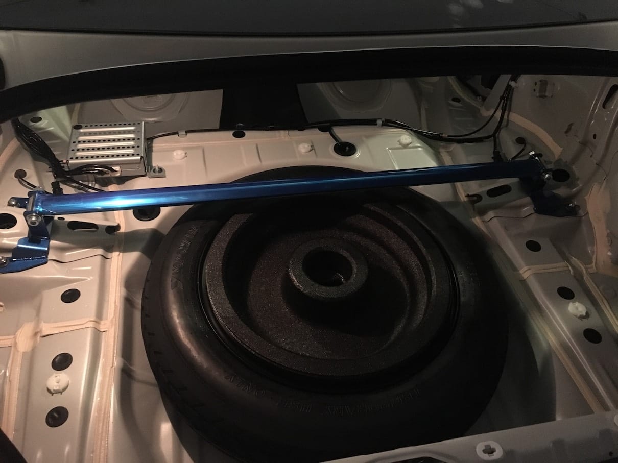 Packages arrived!: Attachment 163353 Rear strut bar installed (plus the spare fits under it fine): Attachment 163354 Front strut bar w/ master cylinder brace installed: Attachment 163355 You can see the master cylinder brace and how I removed the bracket holding the wire harness in place (this is an AT car, bracket and harness is only there on AT cars): Attachment 163356 I just got back from doing a couple of shakedown cruises. I did the first one and then came back and retorque everything. After that I did a more spirited/elongated shakedown cruise. I definitely feel like the brakes are firmer and more responsive, I don't know that the strut bar really did anything otherwise. It mostly feels the same handling. I also peeled off the blue plastic to expose the aluminum bar after I got done retorquing from my first shakedown cruise. For those who are wondering (or may need to know), I used the following torque specs: * 14mm nuts on rear strut tower: 14.2 lb/ft * 12mm nuts on front strut tower: 17 lb/ft * 12mm nuts on front strut tower brace: 17 lb/ft After I get the rear seat delete kit in, I plan to carefully reinstall much of the interior trim and then take out the bar on the rear so I can cleanly cut through the carpet just enough to fit the brackets and then reinstall the bar. Hopefully the end result will be a nice clean look. I don't want to leave the car stripped completely. |