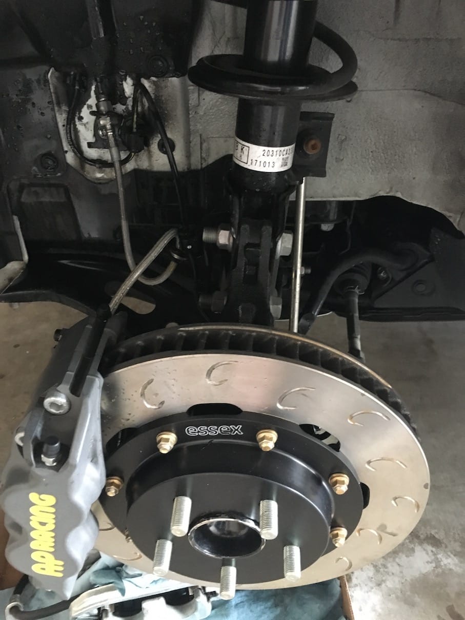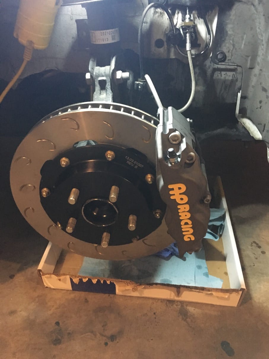 Last weekend I was unable to do any other significant work, because I had to travel for my job. This weekend I was lucky enough to get some good garage time in, including having my housemate move their vehicle so I'd have the whole garage to myself. Attachment 165794 Anyhow, I went ahead and installed my AP Racing Sprint big brake kit + Ferodo DS2500 pads. I also put Spiegler SS lines in the rear (no photo) with Ferodo DS2500 pads to match. Left (Driver) Side Brakes Attachment 165790 Right (Passenger) Side Brakes Attachment 165791 After bedding in, I took this shot. As you can see (barely in the bright light) there's a color change with bluing on the rotor. Attachment 165792 Unfortunately, while bedding in my TPMS light kicked on... I'm still not sure what the cause is. Attachment 165793 All in all though, these new brakes are performing spectacularly in my quick test cruise. Unfortunately even after bedding in the Ferodo DS2500 are VERY noisy. I am hoping to find some non-noisy pads that I can swap in on all four wheels so that my neighbors don't hate me. I'm looking at maybe Carbotech 1521. I'm probably going to email CSG and Essex to see what they recommend. Cheers and safe driving y'all. :burnrubber: |