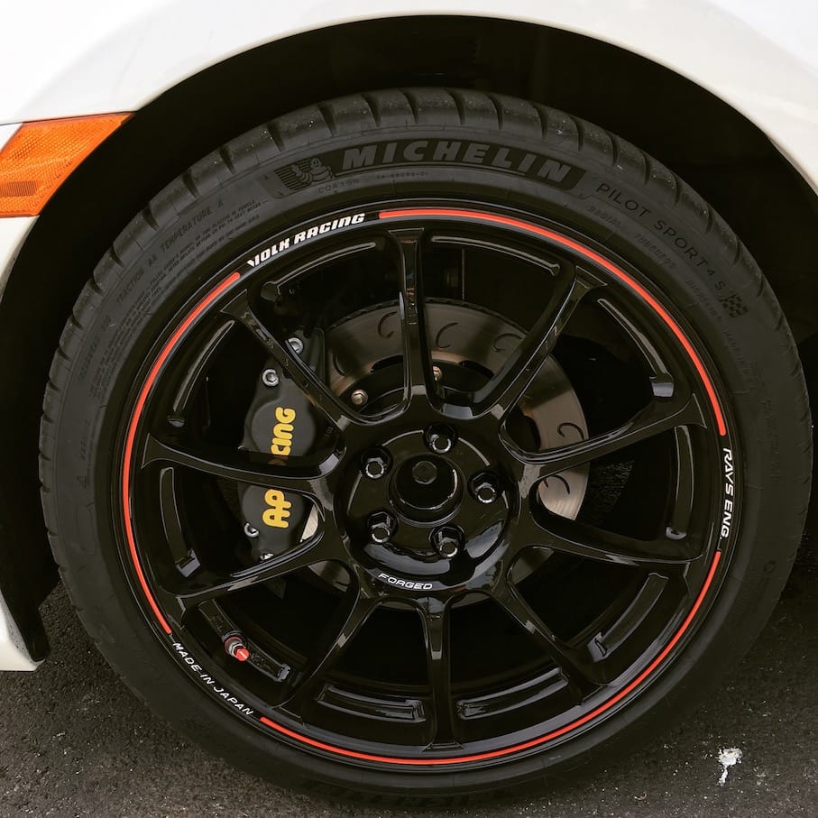 So I should apologize in advance for posting again so soon, but I do have a good update :) My wheels and tires are on the car and it looks great. I was originally planning to mount 225/40R18 Bridgestone Potenza S-04 Pole Positions, but these are now discontinued according to my tire guy. In the end I got a great price and went forward with putting 225/40R18 Michelin Pilot Sport 4S on it :) I'm glad that I did. I can't wait to give it a serious shake-down cruise, and then my next item on the agenda is getting brakes on. I won't be able to work on my the brakes until next Friday, but hopefully within a couple of weeks I'll be able to do another weekend track day or another Twisted Sisters run, one of the two. Then I'm going to start looking at some minimal suspension modifications I can do this year while I wait on an influx of spare cash I can get away with spending on car parts instead of home renovations :) Here's a closeup of the wheels mounted with the tires (photo taken before the car wash). I had to use the collar for the valve-stem from the TPMS sensor, rather than the one that came with the wheels so the colors don't match perfectly, but I could at least use the washer and valve stem cap that are red to match. Attachment 165518 I just got back from visiting the car wash to clean out the inside of my car and the outside after having my stock wheels/tires being transported and all the other mess that went with it. She's a beauty, just need to get my suspension mods done sometime soon to both improve handling and to close that massive fender gap. Attachment 165519 Pretty girl :) :burnrubber: |