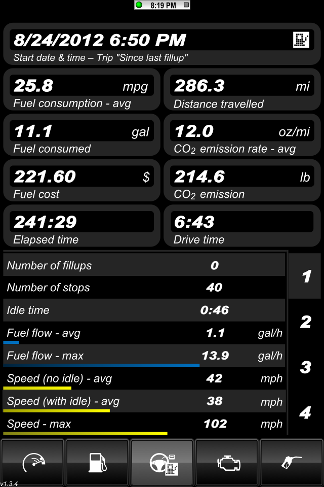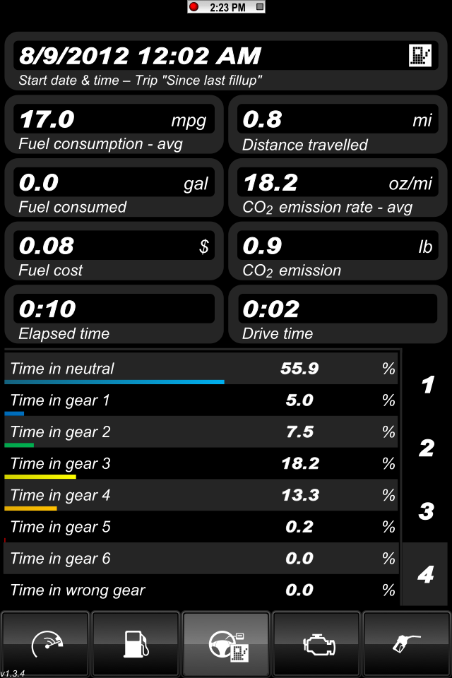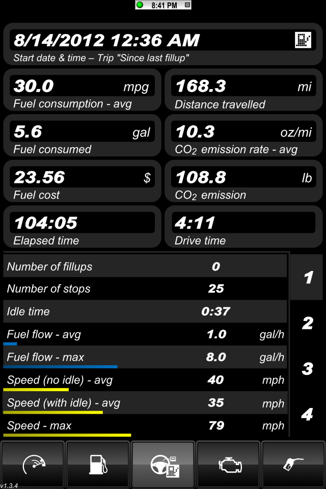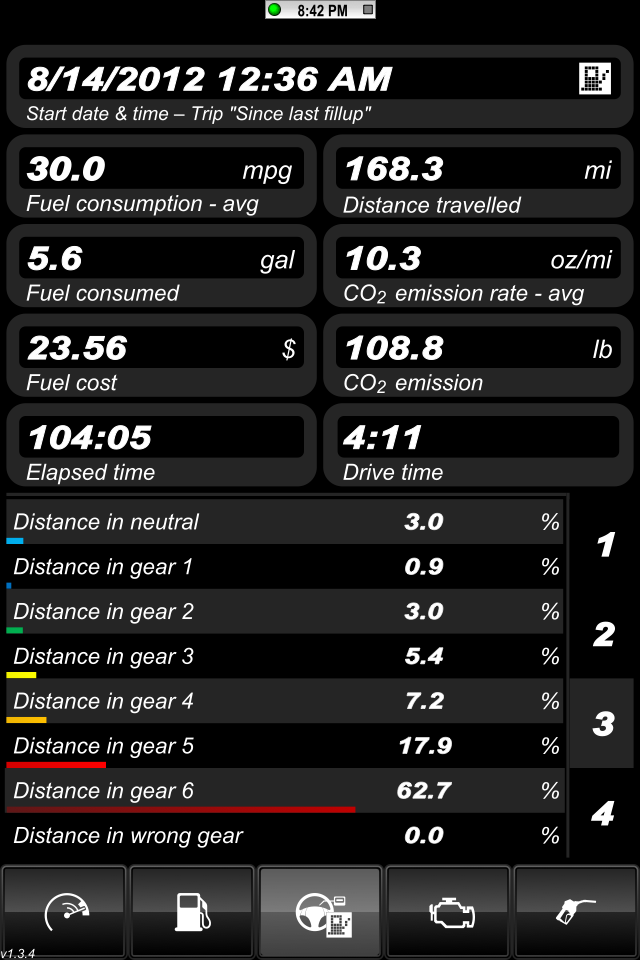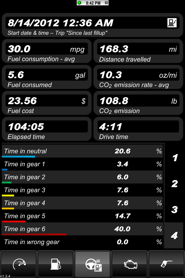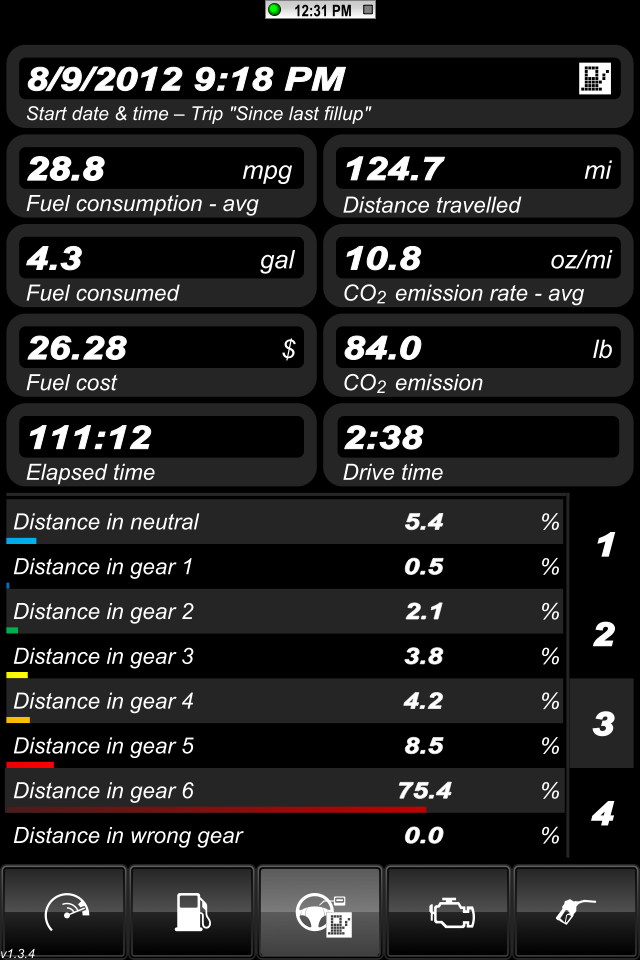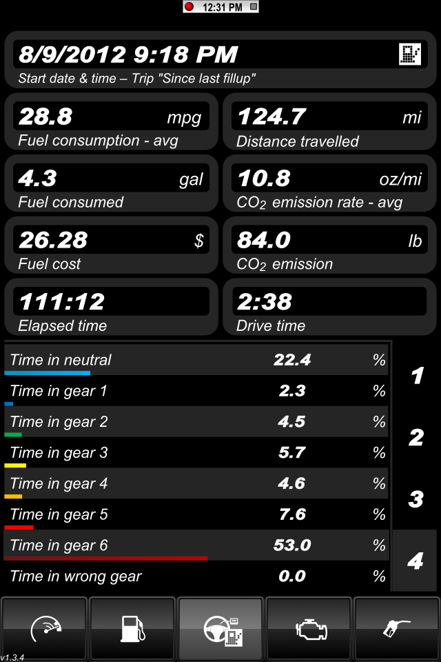 I think I decided how I am going to track the data. I took screen shots of the app running on the way home from work tonight. I'm driving it like I normally do and I'm not trying to drive more efficiently. I still rips through the gears every now and then like I usually do.