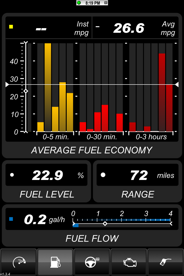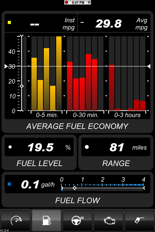 My gas light illuminated on the way home from work today so I'll be filling up tomorrow. I also ordered a GoPoint BT1 Bluetooth OBD II adapter so I can use it with the Dash Command app on my iPad. I'll be able to collect a lot more information this way and provide John more details of my driving habits, climate, etc. For anyone that is interested, GoPoint is having a sale on their adapters now. $59.99 for the cable and $69.99 for the Bluetooth version.