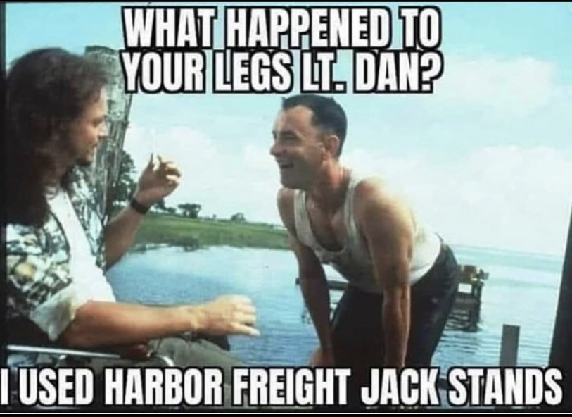 I also don't cheap on on stuff that will inflict a lot of injury to me. Had a cheap drill bit snap on me and almost injured my already ugly face. That said, I agree with Impureclient and use multiple devices when I'm under the car. Using the Jack Stand, Lift, and if I took a wheel off I'm putting it under the car and using wheel chocks. |