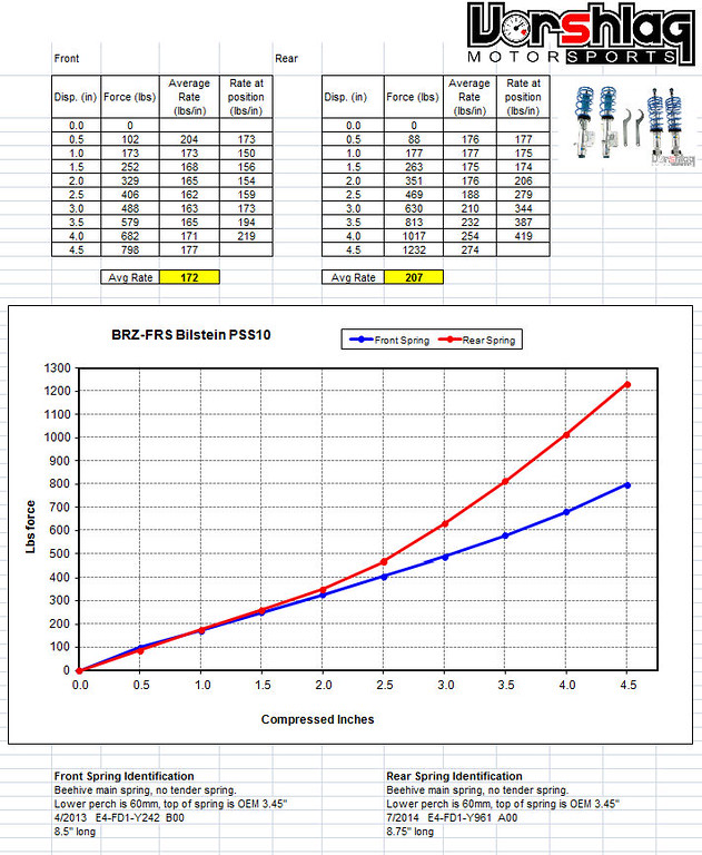 In my case, running Swift BRZ Sports which are only 34% stiffer in front, 43% stiffer rear, I did not feel like I had insufficient damping front or rear. At the track the setup was 85% OK, and surprisingly competitive. As stated my biggest issue was lack of front bump travel with 1.25" lower ride height and further ~3/4" loss of bump travel due to camber plates... Quote: