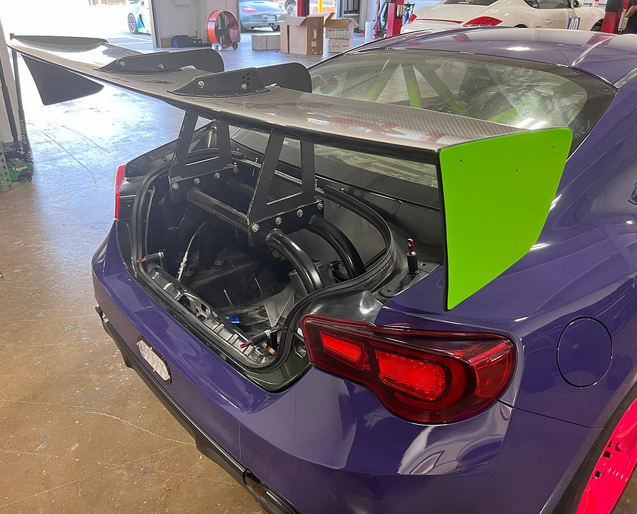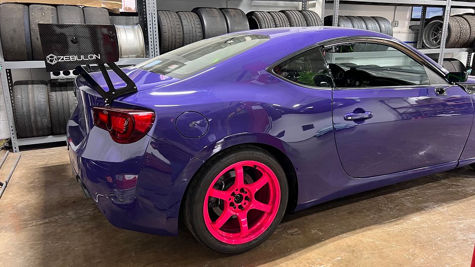 We have moved shop locations and had a Ton of other things going on so the FRS has been sitting a lot without much progress. Just haven't had much time to touch it with everything going on...But I'm finally finding some time and making some things happen so figured I'd share where we're at now! https://hosting.photobucket.com/imag...720&fit=bounds With all the down time and knowing we weren't going to touch the car much, I turned the car over to our neighbor who wraps cars and in keeping with the Porsche color theme of my prior car, I had the car wrapped in Inozetek Ultraviolet. It's a little too much 'drift car' looking right now without the bumper and the hot pink roller wheels but we'll change that at some point. ;) This is pretty much where the car is going to sit as we begin to install the K Swap, but before that gets really going there's been a few other ancillary projects that needed done. For starters, the wiring under the dash and around the interior was a MESS. The car had Lots of track accessories that I plan on changing up to more updated parts, and I also like a clean OEM+ like install when it comes to interior wiring. So Lots of stuff had come out: - A Coolshirt box previously mounted in the rear with a switch - An old fire system that needed all of the tubing and pulls removed - Old video camera cables and charging cables for them - Old AIM Solo wiring - Beastronix box that will get swapped for a TracBox https://hosting.photobucket.com/imag...720&fit=bounds This was a refreshing pile to remove from the car, and as part of that I finished pulling out the passenger seat and degreasing/cleaning the entire interior. It was pretty dusty/dirty in there. Looks a whole lot better now and ready to start installing things back in. :D https://hosting.photobucket.com/imag...720&fit=bounds Up next those additions will be: - AIM Dash - Smartycam with microphone - Coolshirt box in the former passenger seat location - Setup for Ballast in the former passenger seat location - Fire bottle in the passenger footwell - Transponder with switch - Power distribution for all accessories - New drivers seat with slider vs the former fixed mount The other Big change is the car no longer has the Voltex Type 7 wing chassis-mounted. I waffled back and forth on this, because it's a beautiful looking aggressive setup. But in the world of Aero technology, it's a bit outdated. The airfoil is Huge and not very efficient. Weight is also a factor; even with the setup having been built as light as possible, the Voltex wing and chassis mount with all the mounts/hardware and the fiberglass trunk cover weighed in over 35lbs. I had saved the spare stock trunk with TT5 Zebulon wing from my previous car, and the total weight of that setup is only 30lbs, so it's now on the car. I have a few changes in mind to optimize it down the road with a different airfoil, mounting style, and potentially modified endplates but for now this is going to be the base wing setup. Before: https://hosting.photobucket.com/imag...720&fit=bounds After: https://hosting.photobucket.com/imag...720&fit=bounds |
