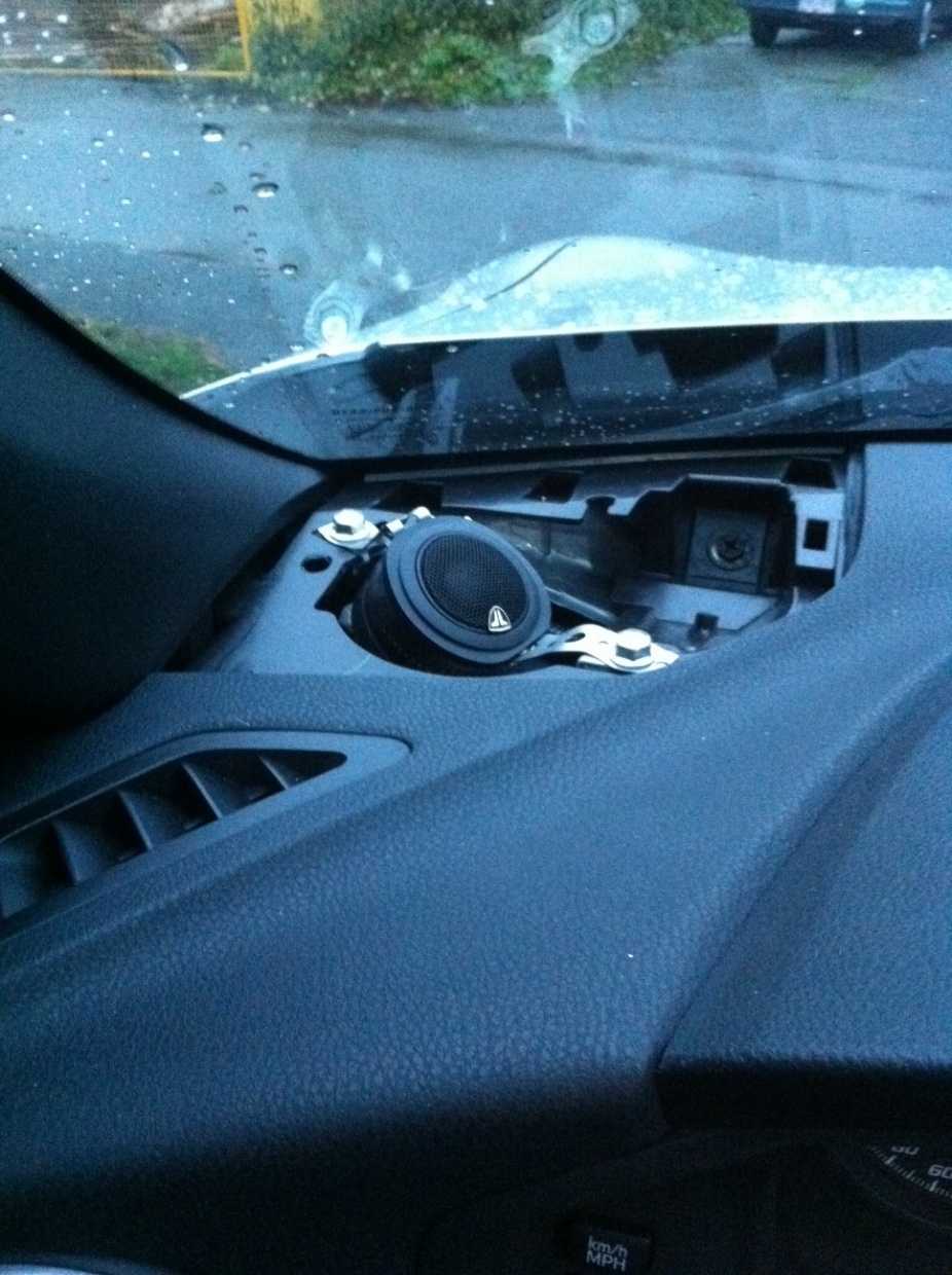I do recall that the JL install manual stated that the best spot to mount the tweets were literally just about 4-8" above the woofer (so, pointing at each other). That's supposed to minimize any imaging/timing issues. I didn't want to do any cutting/modding, so I just stuffed them into the stock location. JB, I might get back in there and twist them a little more to see if I can further reduce relections off the glass... although, like I mentioned, they certainly seemed softer after a 'break-in" period. |