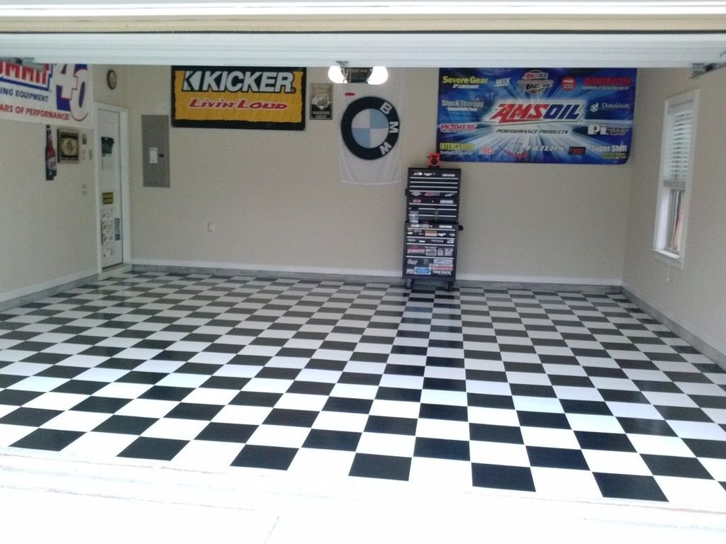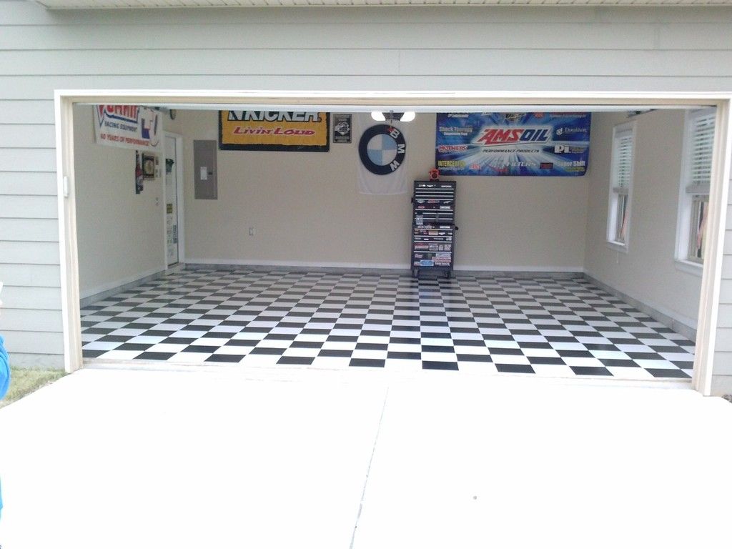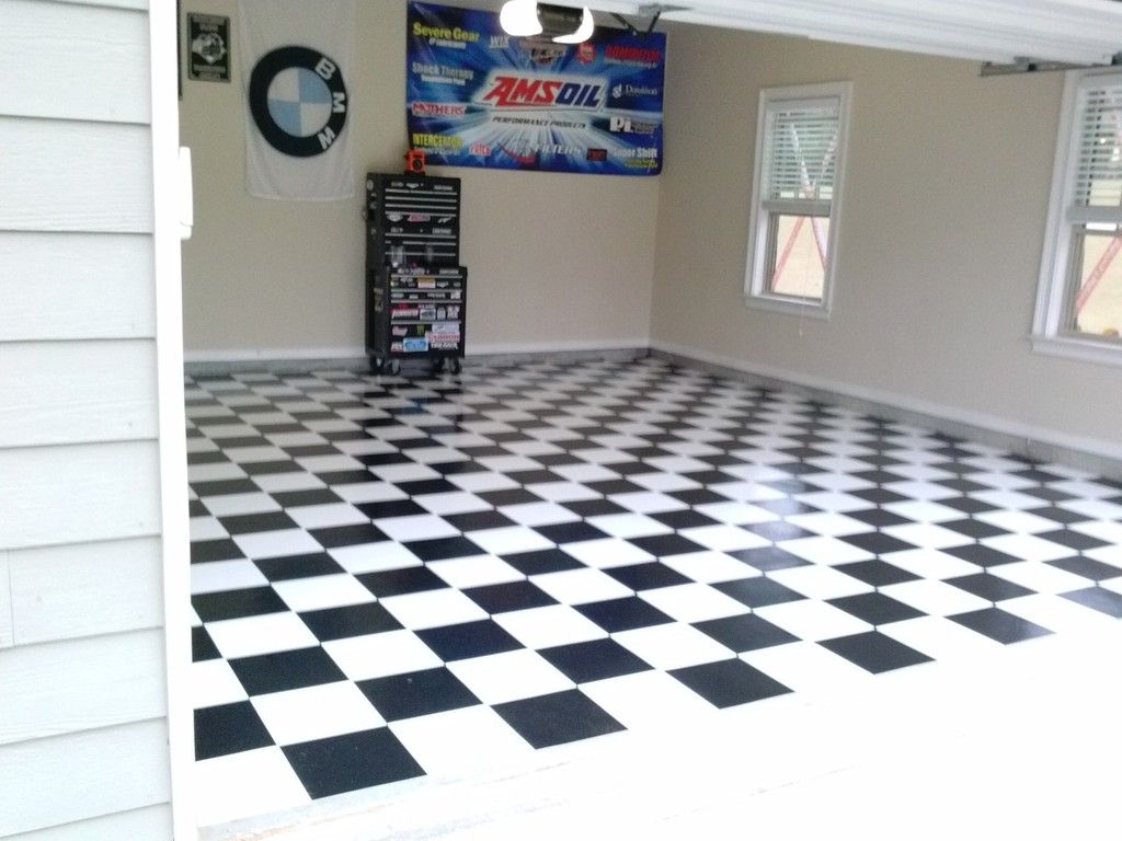 Cjm005, I'll second the recommendation for visiting garagejournal.com. I think those Craftsman boxes have a cool look. I used to have some, and painted one of my benches to match -- then replaced the Craftsman stack but still painted the newer cabinet to match what had been there. So in my green garage, I've got one corner that looks like this: http://imageshack.us/a/img62/5093/redbench.jpg In your shoes, I'd maybe give the checkerboard idea some more thought. Especially if you're planning on doing much work in the shop. It's not a pattern that's easy on the eyes (the flooring equivalent of a strobe light, in some ways), and it can also get kind of irritating when you set tools out on it or drop small parts. Still, I know there's a kind of visual history to it. But I went for something that reflected light and was consistent enough that I could find a nut when it rolled away from me. |