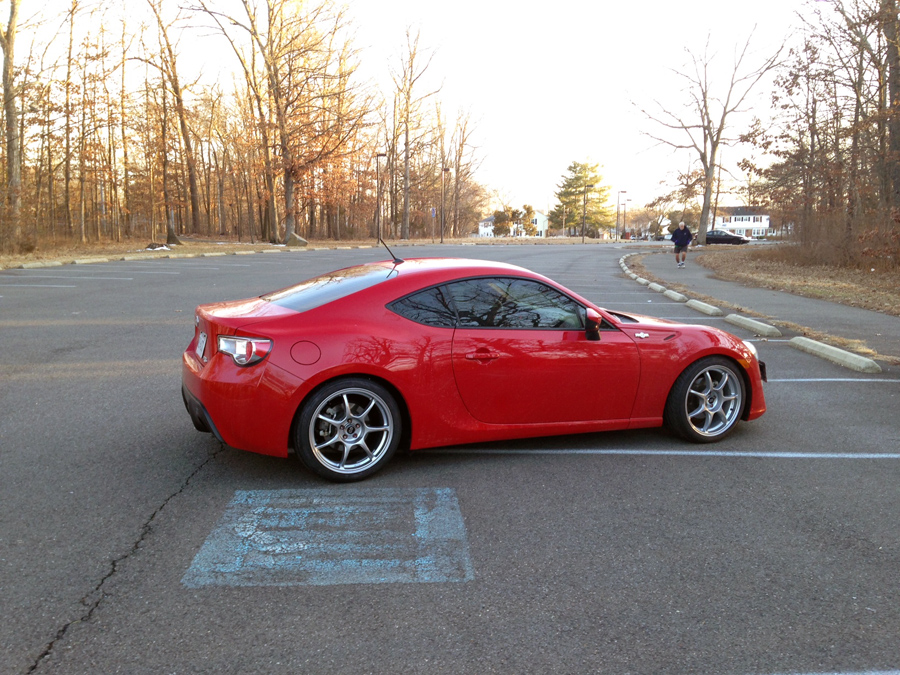 Hey everyone, I'm posting this for the sake of adding to the wheels & fitment directory that I used so much when it came to sizing these wheels. I ordered these Enkei Fujin's from a vendor on ebay for a great price back in October and they've been sitting in my living room up until this week when I took delivery of my 86. They're 18x8 +40 fitted with Bridgestone Potenza RE050A 225/40's I'm super happy with how they look as I was only going for a reasonably conservative look. The only thing I'd change if I could would probably be the offest to at +35 but still happy with the +40. Fairly flush even with the factory aero kit. Super happy with these tyres too. More grip than standard when you want it and will still slide if you push them. Although I definitely think they are overpriced but I picked them up for pretty much half price on an ebay sale. Usually $500ish a tyre, got them for $260 each. Excuse some of the photos, weather hasn't been great here since I picked the car up. Also, iphones aren't the best for taking photos of black wheels on a white car. http://i1293.photobucket.com/albums/...ps36486910.jpg http://i1293.photobucket.com/albums/...ps6c860cf8.jpg http://i1293.photobucket.com/albums/...ps810ecbe6.jpg http://i1293.photobucket.com/albums/...psd3e92e3c.jpg http://i1293.photobucket.com/albums/...ps73d72f39.jpg http://i1293.photobucket.com/albums/...psf2adbbb0.jpg http://i1293.photobucket.com/albums/...ps2cc9805f.jpg http://i1293.photobucket.com/albums/...psf95e3b25.jpg http://i1293.photobucket.com/albums/...ps4553a323.jpg http://i1293.photobucket.com/albums/...pse4046e52.jpg http://i1293.photobucket.com/albums/...ps7c861a33.jpg http://i1293.photobucket.com/albums/...ps29f11c73.jpg http://i1293.photobucket.com/albums/...psa5d9e26c.jpg http://i1293.photobucket.com/albums/...ps4a6a14fe.jpg |