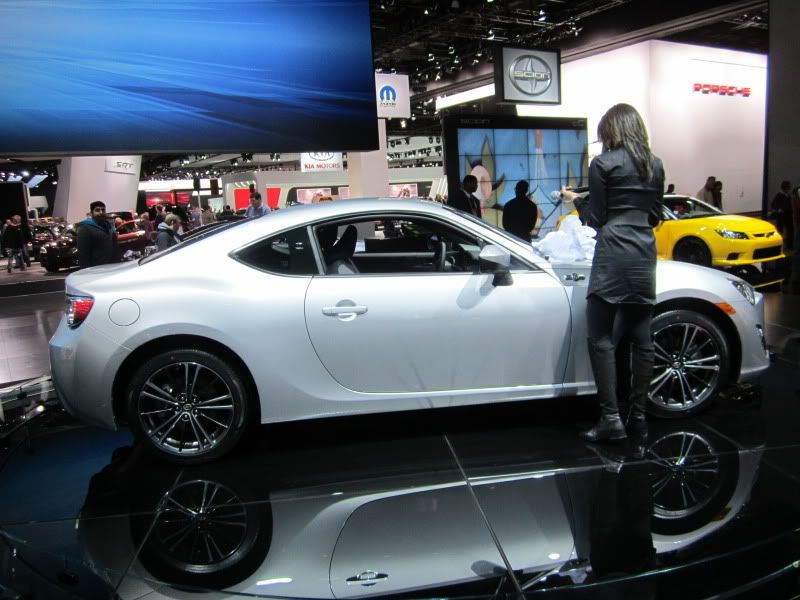 http://img.photobucket.com/albums/v6...s/IMG_2385.jpg http://img.photobucket.com/albums/v6...s/IMG_2359.jpg "Nice" lady telling us all about the new Scion. No price. Yes, we asked. She is about 5'7" in heels. Car was a little bigger than I had imagined. http://img.photobucket.com/albums/v6...s/IMG_2389.jpg She had a little contest about the history of the FR-S and I won this. http://img.photobucket.com/albums/v6...s/IMG_2402.jpg http://img.photobucket.com/albums/v6...s/IMG_2404.jpg I have more pictures but most of them are the same angles. We were not allowed in the cars. Subaru PR guy said that there will be two strict and distinct trim levels to the BRZ and that a turbo "is not possible". He was adamant about that and stood and argued with a couple young guys about it for several minutes before walking away in disgust. I was just an interested eavesdropper. The young lady at the Scion display said that equipping the FR-S will be A la carte. |