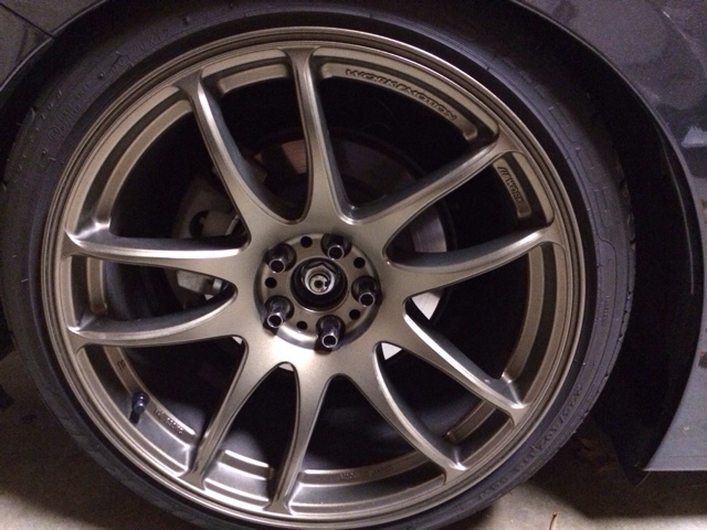Specs: Work Emotion CR Kiwami's in Bronze 18x9.5 +38 all around *i have 20mm spacers for the rear to make it +18 if you'd like to buy those also. Tires: Federal SS-595 225/40-18 9.8/10---No curb rash at all. Asking $2100 picked up for the wheels and tires. Hit me up ! Located in SoCal/Las Vegas http://i1118.photobucket.com/albums/...C_0228-2-1.jpg http://i1118.photobucket.com/albums/...DSC_0224-2.jpg http://i1118.photobucket.com/albums/...DSC_0069-1.jpg |