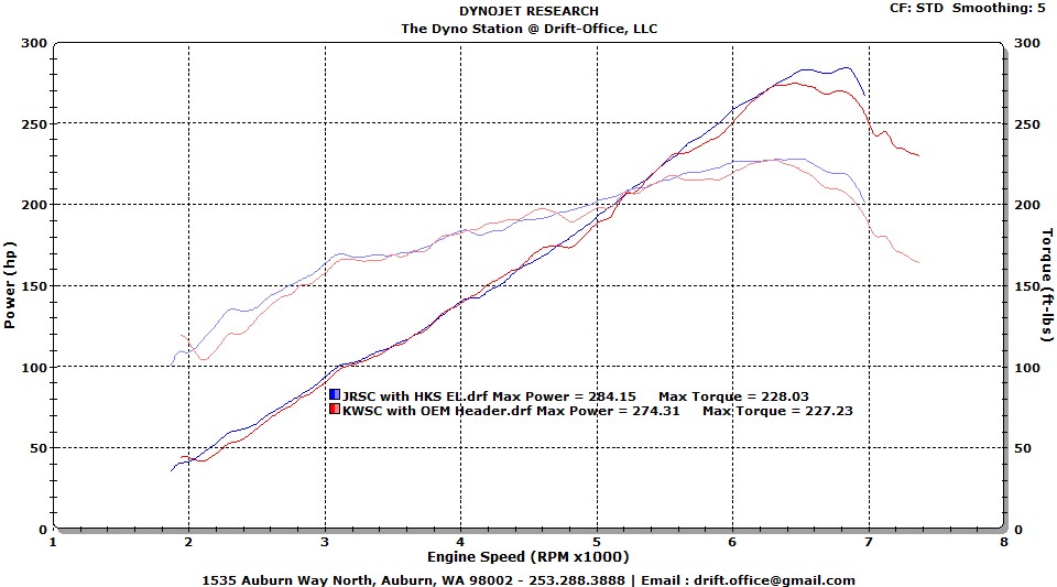 So to quantify and recap : JRSC : http://www.ft86club.com/forums/showt...t=52992&page=3 KWSC : http://www.ft86club.com/forums/showthread.php?t=53538 So I pulled some of the charts off.. this is what the head to head looks like - Attachment 66910 Same SC unit, about the same boost (there will be variance because it's belt driven) and an edge goes to the JRSC kit since that project has a HKS EL header. Both kits just came out in Dec, and AFAIK, these were in the first batch of each of the respective companies that were posted... Now when you take the top SC performer with a header and compare that to an AVO setup at the same boost... Attachment 66911 "All things equal, pound for pound of boost, a SC won't outperform a TC." My 2 cents. Bob @ Drift-Office, LLC |