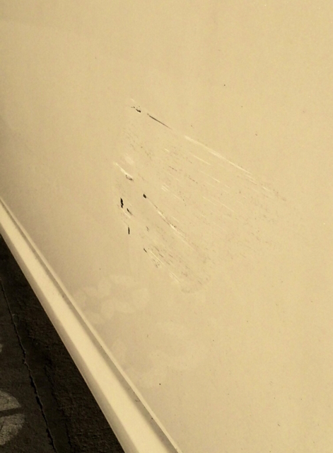 ugh, I got a nice, 1 inch long scratch/dent/crease on the lower half of the drivers side door. It hurts to look at every single time I walk up to my car.