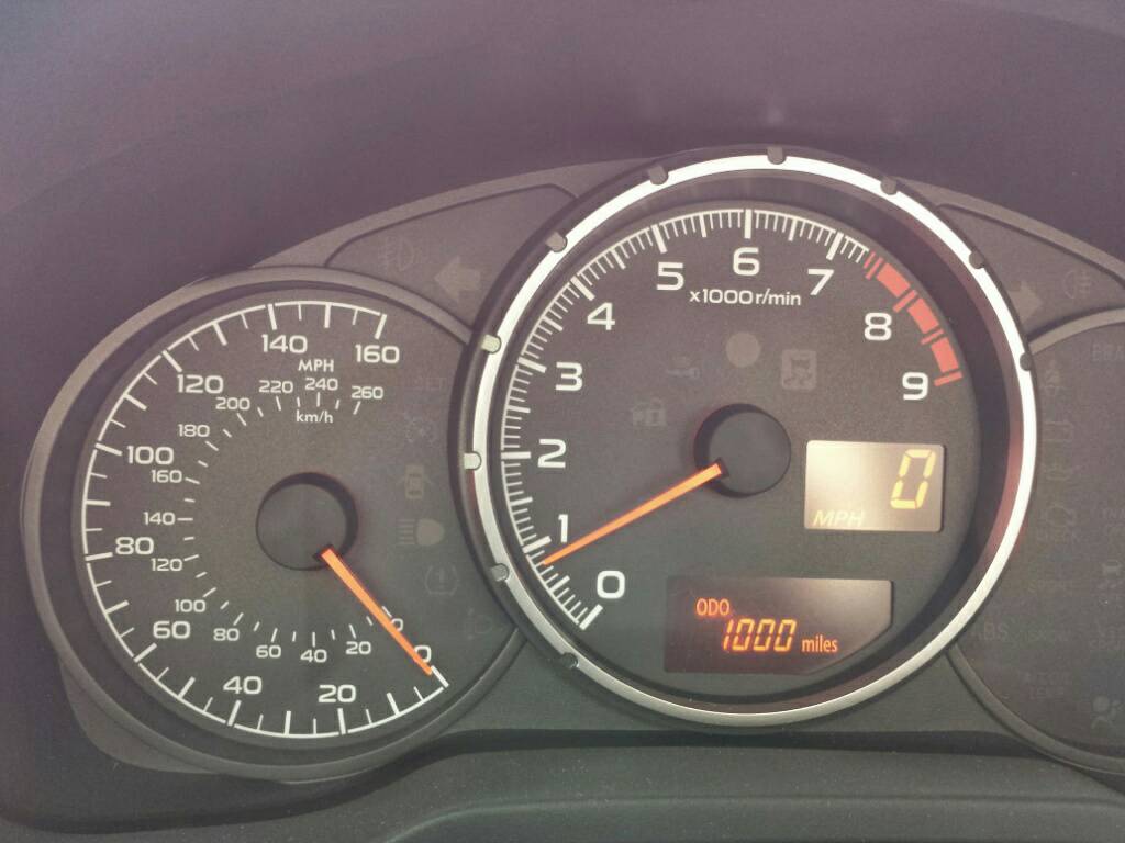 I pulled over, stopped, took an odometer picture, reset the rev warning to 7k, then finally floored it to take off. I have done a couple donuts since (not looking to replace tires soon, so this will be a very, very rare thing), and I have enjoyed driving UP some curvy roads now that I can really accelerate out of the turns.