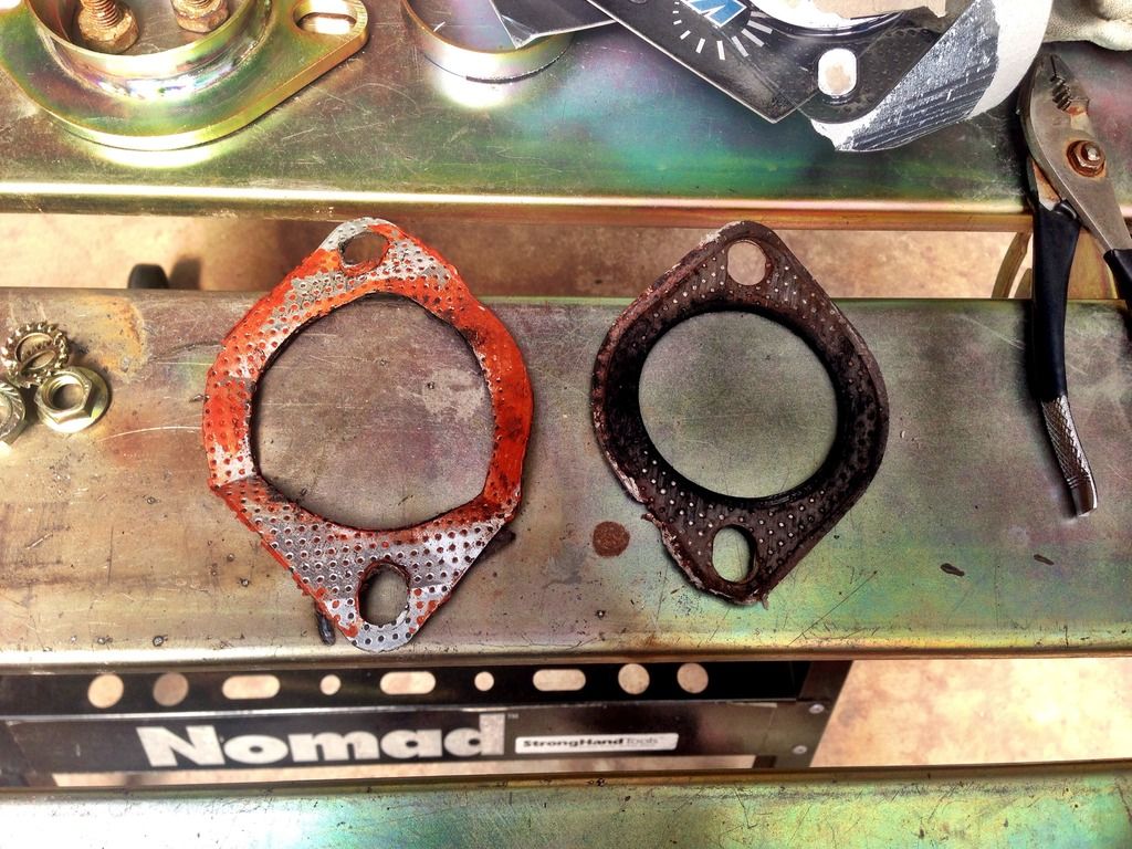 http://i174.photobucket.com/albums/w...FF6B4A5F73.jpg Little to long: but will not interfere with fitment: http://i174.photobucket.com/albums/w...7D1A310D05.jpg I didnt realize how much longer the J2 pipe was: http://i174.photobucket.com/albums/w...D1D44D8ECF.jpg At least a good 1.5" longer from eyeballing, 2" with the adapter added: http://i174.photobucket.com/albums/w...91DF2E85AE.jpg The old crusty: http://i174.photobucket.com/albums/w...BBF0FFBE60.jpg New gaskets: http://i174.photobucket.com/albums/w...EBB7345EE8.jpg Installed and checked for leaks: http://i174.photobucket.com/albums/w...6213B2E0E2.jpg FP with new gaskets and adapter fist log: http://datazap.me/u/solidone/stg1-fp...mark=6730-6703 Horrendous "knock," topped out at -5 flkc... All that work for even more "knock" If I torque down the hardware any more stuff is going to start getting twisted and bolts will stretch or break... |