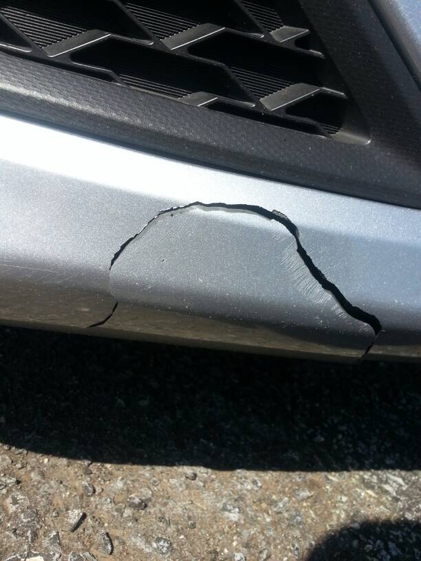 I hit a raccoon and at first glanced I thought it had only cracked my bumper, which I zip tied back together to prevent further cracking. It ended up also bending my radiator and AC condenser. |