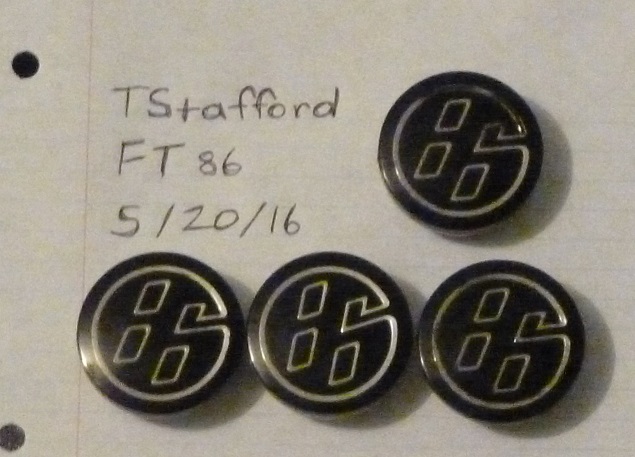 86 circle logo black background / silver outline of 86 circle Some rub on one cap where silver looks worn. These were not on the car long as I went with aftermarket wheels/ tires. Attachment 137300 |