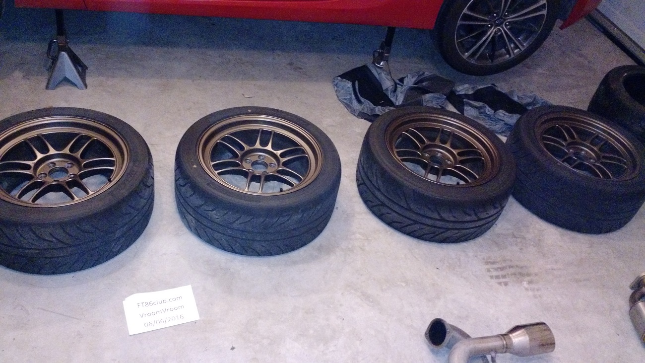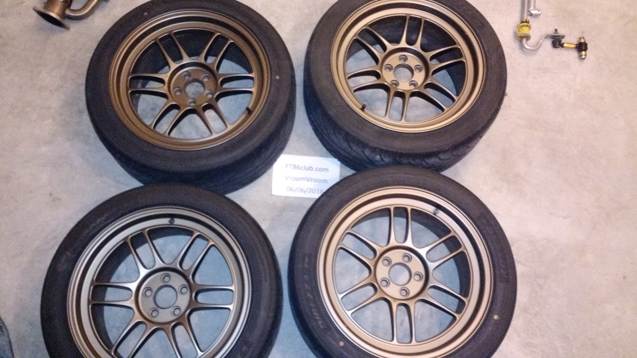 These rims have no damage, there is a tiny tiny rub mark from cones on one that it all. These have stayed in tire bags and were stored in my garage, they were not my daily's so they are in great shape. No tpms since they were not daily driven. All are worn across top evenly at 4-5 32nds. I also will include a spare Z2 tire that needs a patch at edge of tire(you must take or no deal). These tires have plenty of life left in them. I ran these with a stock suspension on camber bolts with no issues and have friends who have ran exact same with a dropped coilovers, camber top plates, bolts, control arms.