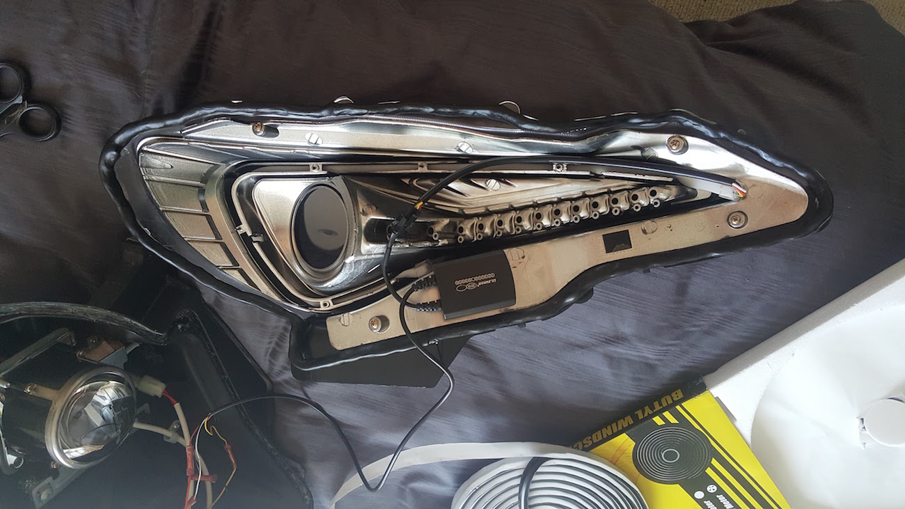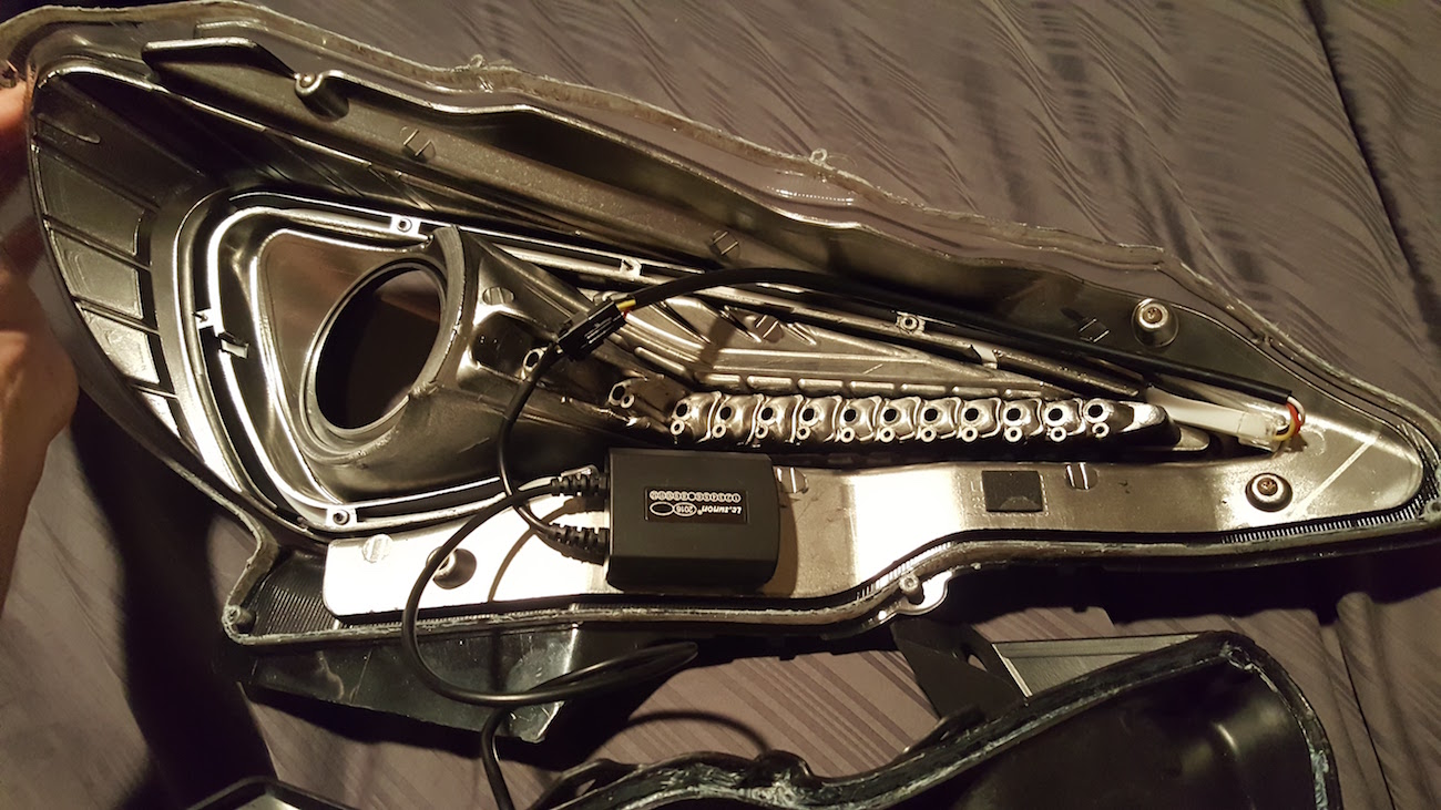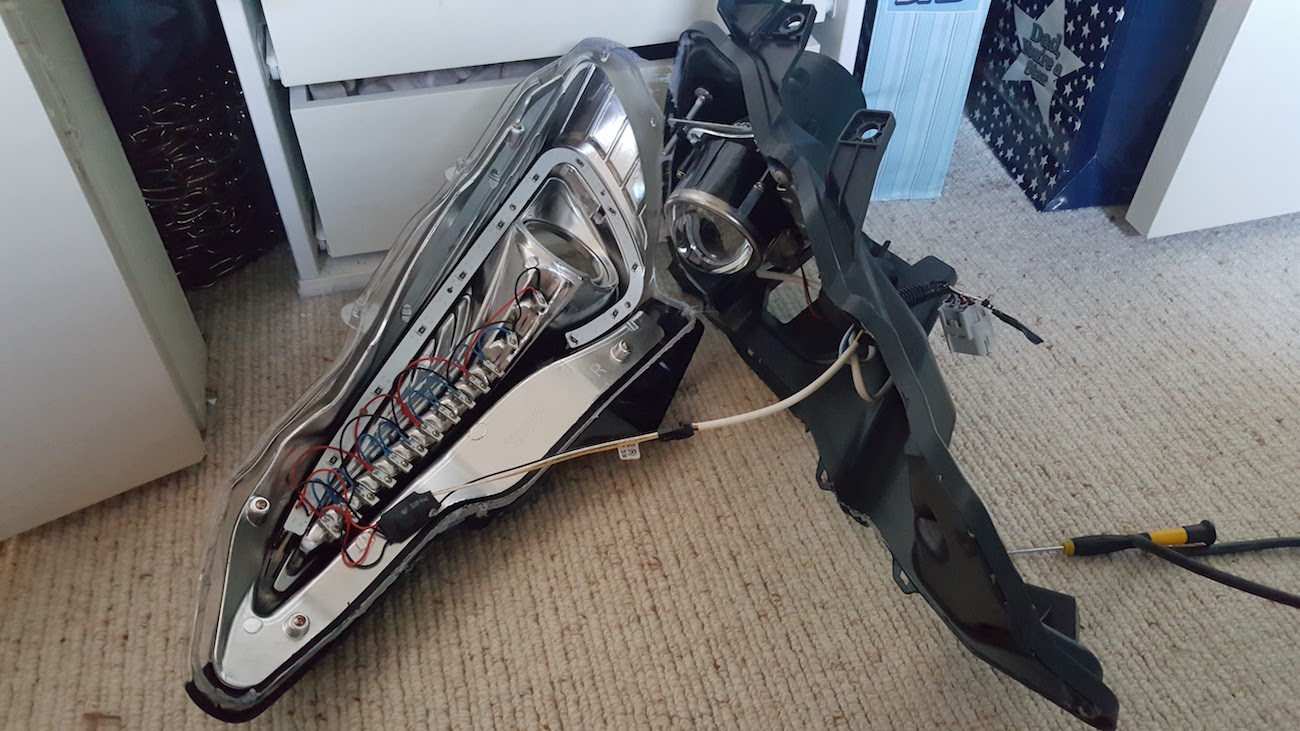 I have found that the LED 'boomerang' on the Spec D Headlights is too dim for me during the day, so I decided to retrofit the headlight to install a switchback one that was much brighter. If you are just swapping out the LED Bar for a different one then you should be able to get this done in an afternoon (Approx 4 hours taking your time) and the process is completely reversible! However, if you are doing the full change of LED Bar, painting the inside housing, and changing sealant, I would allow 2 full days and this process is of course, not completely reversible. Note: The pictures shown are from both the left and right headlights, which may appear confusing at times.