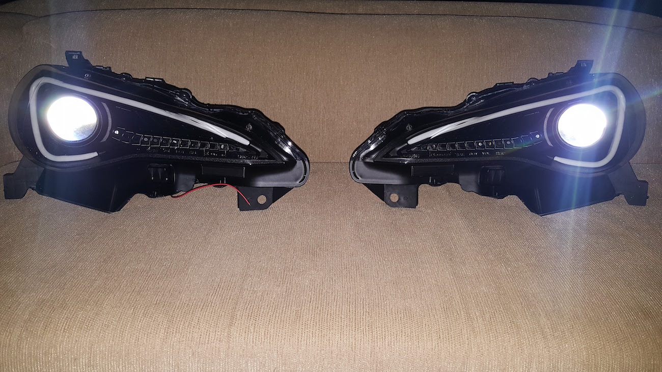 Tools Required: Heat Gun (Or Oven) Various Sized Flathead Screwdrivers Phillips Head Screwdriver Crimp Tool Wire Connectors Zip Ties Half Loop Wire Connector New LED Bar Spray Paint (Optional) Butyl Tape or Different Silicone Sealant (Optional) Razor Blade/Small Sharp Knife (Optional) Remove your headlights from the car. As my headlights were unable to fit into my oven, I had to use a heat gun to remove the top from the bottom. I found it best to focus on getting the pointy (inside) edge open first and then moving down the headlight. It is best to hold the heat gun about 3cm (about an inch) from the gap where the top and bottom parts attach, on the lower heat setting (350°C). Heat for around 10 seconds while continuously moving the heat gun back and forth over an area around 20cm. Once the sealant is soft enough you should be able to pry it open, the flathead screwdrivers will help. As you pull the pieces away from each other, keep using the heat gun where the bits are still stuck together just a bit further down. Attachment 143400 Attachment 143401 Attachment 143402 Attachment 143403 Attachment 143404 Keep prying the pieces apart and eventually you will have two separate pieces with a disconnect able wire holding them together. It comes apart by pressing the tab pictured and pulling away from each other. Attachment 143405 Attachment 143406 The LED 'boomerang' can be taken off by removing the 3 screws holding it down, and then lifting it out off of the metal guides. Attachment 143407 Attachment 143408 Here is what lights up the LED 'boomerang', 33 small LED's. Attachment 143409 Attachment 143410 Optional: If the LED Bar that you are installing is a switchback, then you can simply remove the indicator bulbs by undoing the screws behind each and pulling then out. Attachment 143411 The wiring unit is held down with a small amount of glue which can be peeled off easily. Attachment 143412 To take out the plastic piece that held the indicators and LED, remove the 4 screws from around the outside and take it out. This does take a little bit of jiggling to get it off properly. Attachment 143413 Once the piece is separated you are then able to take off the fogged plastic 'boomerang' by pressing each of the (I think) 5 clips down with a small flathead screwdriver and then pulling it out. When taking this out there is a small bit of clear silicone at each end of the piece. These can be taken out with the help of some small nose pliers and scraping with a small flathead screwdriver. Attachment 143414 Attachment 143415 Attachment 143416 Test fitting the new LED Bar. Attachment 143417 Optional: If you want to paint the inside cover, get a good spray paint that will stand up to the events. I put three light coats on to just cover the entire front of the piece. Make sure that you clean/wipe it down first. Attachment 143418 Attachment 143419 Attachment 143420 Moving to the other part of the headlight now, you may want to remove the lens and cover so that it doesn't get damaged. You'll need to cut the wires that were attached to the front part right here, and slide off the sleeve. Attachment 143423 Attachment 143424 Attachment 143425 Attachment 143430 Attachment 143431 You'll then need to strip the 3 wires and attach them to the ones from your new LED Bar using the connectors shown and a crimping tool. Be sure to crimp both the plastic part and the metal part. Lightly tug on the wires to ensure there is no movement. Attachment 143432 Attachment 143433 Attachment 143434 Attachment 143435 For the ground wire, my LED kit came with some extra wire, which I used to extend the positive power wire out of the headlight, via the rubber backing, through the indicator hole. Attachment 143436 Attachment 143437 Attachment 143438 Using the needle nose pliers to open the gap on the inner housing as much as possible without breaking it, slide the LED Bar through it and sit it in correctly by pushing it down. Attachment 143439 Attachment 143440 If your LED Bar came with a controller unit, this spot here is the perfect spot to stick it. Attachment 143441 Attachment 143442 Optional: Scrape off the silicone front the clear lens with a razor blade and use a flathead screwdriver for the other part. Attachment 143443 Attachment 143444 For the wiring (my headlight is the Toyota 86 GTS/BRZ/8 Pin version) to have the LED Bar always on, remove this white pin from the harness by removing the white cover with the pliers, then use a small flathead screwdriver to lift up the bit above it (as shown in the picture), while lightly pulling the back of the wire. Then splice the white wire into this red and white wire here on the automatic headlight adjuster. Attachment 143445 Attachment 143446 Attachment 143447 Attachment 143448 Optional: Peel the paper off of the butyl tape and sit it along the edge of the plastic cover. Press down the sides to get some good coverage, over where you can see the remains of the old sealant. Spend about 2 minutes heating all of the way around the butyl tape before pressing it together with the other piece. Put the final screws in and screw them tightly to pull the pieces together. I used clamps around the clips for about 10 minutes to hold them in. Cut off excess with a razor blade. Attachment 143449 Attachment 143450 Attachment 143451 Attachment 143452 Attachment 143453 Attachment 143454 Repeat with the other headlight. Some comparison shots - The new LED Bar is much brighter than the old one and you can see that it is white instead of purple like the original one. The pictures do not do the new LED Bar justice for it's brightness compared with the standard one. Attachment 143455 Attachment 143456 Attachment 143457 Attach your red wire coming out of the headlights to a wire that will go to the positive power on the battery using a half loop connector. Run the wire to both headlights and zip tie it to hide it. Attachment 143458 Reattach your headlights, test and enjoy! Attachment 143459 Attachment 143460 Att