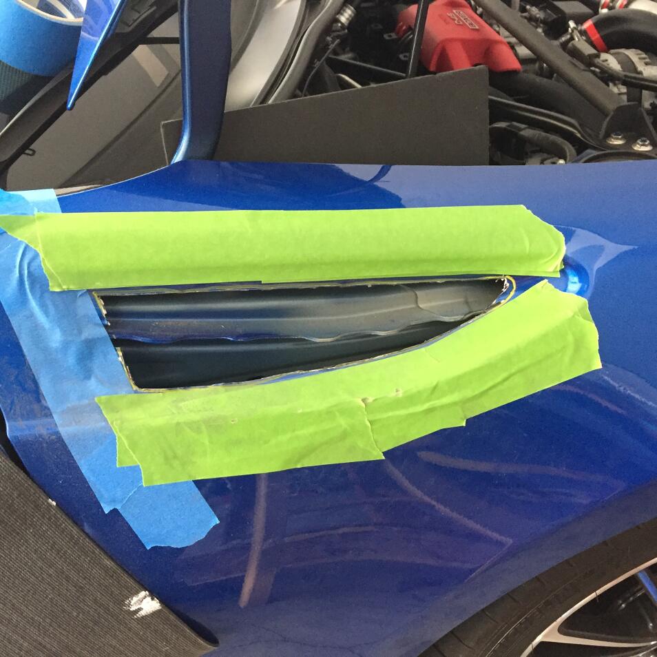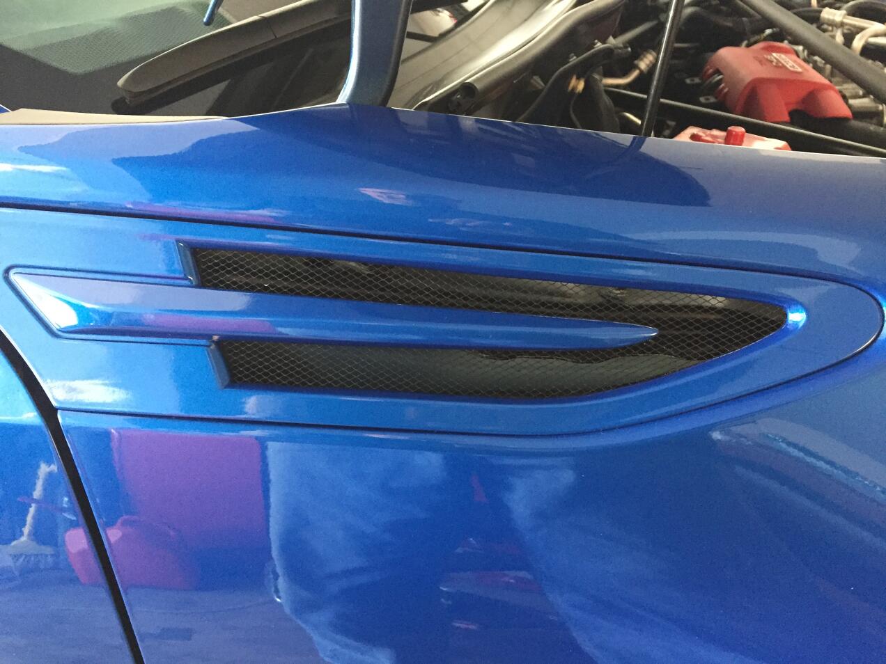 The functional vents started out as new oem vents which I cut out, painted and backed with black wire mesh. The fender cuts were done with a CBN wheel on a dremel (link here). This wheel works fine as long as you go slowly and guard against the dremel's chuck touching the bodywork. I used two layers of tape holding a plastic ruler along the bottom of the vents. If you do this, try to keep intact the receptacle for the rear-most press clip; it helps align the new piece. After cutting the fenders, I put two coats of flat black on the edges of the cuts to minimize potential rust. I also blacked out the inner body panel just behind the vent, which was still showing a lot of primer ( see 2nd photo.) Attachment 145929 Attachment 145926 Attachment 145927 Attachment 145935 Attachment 145942 Attachment 145930 Attachment 145931 Attachment 145932 Attachment 145933 FYI The 'supercharged' sticker is from ebay. I wanted some subtle bling. |