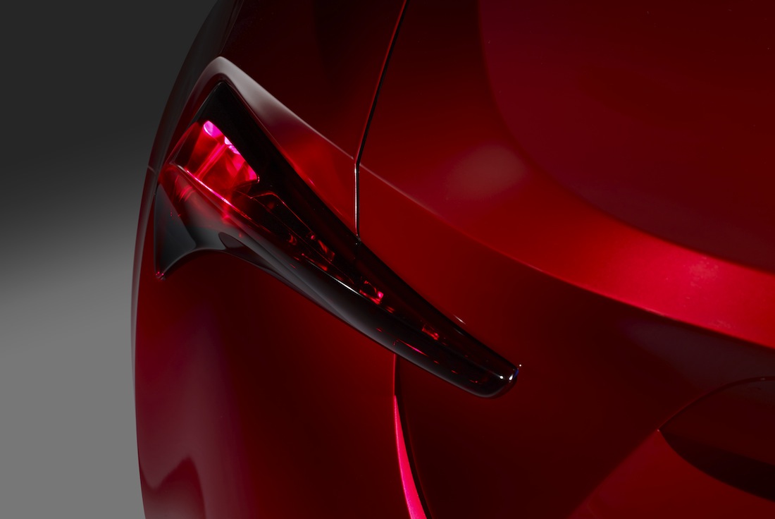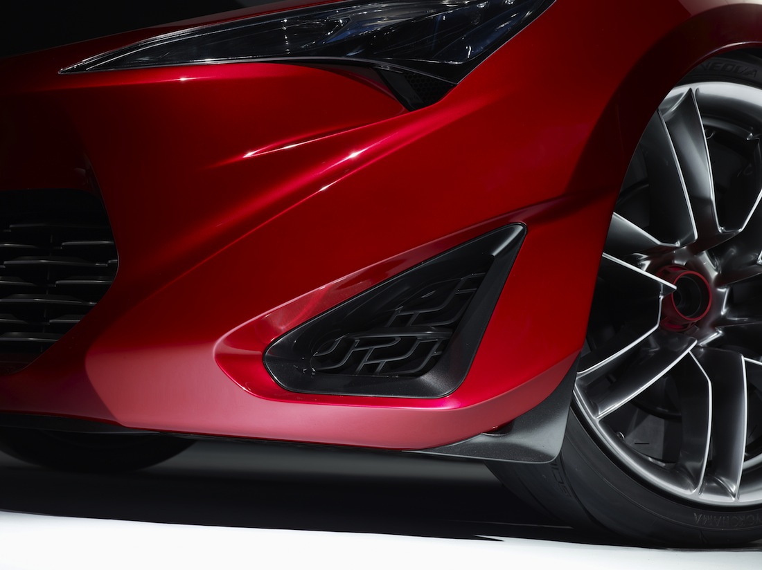 The FR-S Concept is layered in rich coats of Code Red, the appropriately named color that consists of a custom blend of candy and a developmental additive from BASF called Mearlite SSQ.