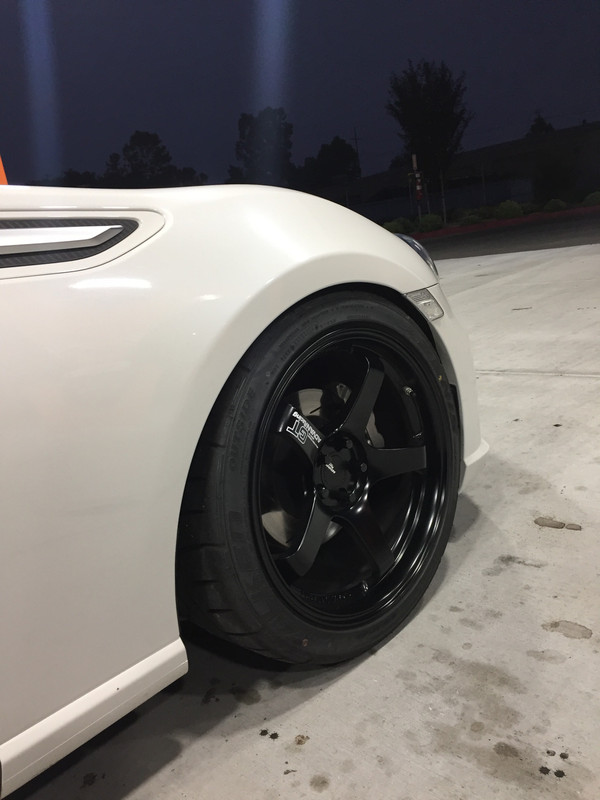 09/05/2017: Finally the wheels arrive! I can be pretty picky when it comes to parts choice, especially wheels. For the BRZ is was tough to choose a set of wheels. Coming from the S chassis world, it's hard to find a wheel that doesn't look good on that car, but for the BRZ, I found this to be the opposite. Nearly every wheel looked a bit odd on the car. I had TE37's in the past, and love them, but I don't think they look that good on this car. I considered Gram Lights, but they looked pretty similar as well, and didn't wow me. It wasn't untill I saw @PRORICAN 's car that I knew what I wanted: Advans. I started doing a bunch of research. Apparently, they no longer offer the TCIII in Semi-Gloss Black. It comes with some weird silver/gunmetal center. Frustrated, I considered other options. I went through the wheel directory looking at wheel/tire combo's, trying to find something that resonated with me, but I couldn't. In the end, I did what any rational person would do. I ordered Advan GT's. Essentially, these are the forged, "big bother", to the cast TCIII wheel (ie; more expensive). I weighed the pro's and con's of just settling for another wheel, but I just loved the 5 spoke look. If I didn't get these, I feel I would of just got bored with whatever wheel I bought and would want to get these anyway, so I just bit the bullet and went for it. https://s25.postimg.cc/j9sermq2n/091417_0215.jpg https://s25.postimg.cc/6v5mra3pb/091417_0225.jpg https://s25.postimg.cc/yiic5ec1b/091417_0209.jpg 09/09/2017: Took the car to Auto Innovation's in Milpitas to get the tires mounted and the alignment done. Since this car is mostly for mountain runs and eventual track usage, I went with a (somewhat) aggressive alignment. Front Camber: -3.2 Front Toe: 0 Front Caster: 5.8 (This is stock, but I'm looking into different options to get this adjusted in the future) Rear Camber: -2.5 Rear Toe: 0 Car drives and feels great! I am getting some rubbing on the rear bumper, and on the front fenders near the side marker. The fenders have not been rolled or touched at all, so I will need to roll the fronts. The rear don't seem to have any issues so far besides rubbing on the bumper. The tires I ended up with are a bit wider than I was planning to run, so I did need to run a bit more negative camber in the rear than I would of liked. However, I don't believe I am suffering too much loss of contact patch in the rear, as these tires are pretty sticky. If need be I can always do a slight roll/pull in order to dial out some of the camber, but I haven't ran into any issues where I felt like I didn't have enough grip. Although, I've only just done a few light mountain runs with them, so only time will tell as I get used to driving on the new setup. I will hopefully be doing some HPDE with the car next year. I want to upgrade the cooling system first, and do a brake pad/fluid flush on the car so it will be able to handle the stresses of the track. 09/17/2017: Washed the car inside and out, so I did a little photo shoot. https://s25.postimg.cc/jccae9ytb/DSC_1132.jpg https://s25.postimg.cc/yl27s207j/DSC_1120.jpg https://s25.postimg.cc/nlh0gghi7/DSC_1117.jpg https://s25.postimg.cc/t9nb7ctkf/DSC_1119.jpg https://s25.postimg.cc/zal04fnwf/DSC_0083.jpg https://s25.postimg.cc/ahbg3sclr/DSC_0077.jpg https://s25.postimg.cc/hxappl80v/DSC_0088.jpg https://s25.postimg.cc/43md0jn5b/DSC_0102.jpg https://s25.postimg.cc/xvjffqhof/DSC_0157.jpg https://s25.postimg.cc/4gdr6qkun/DSC_0028.jpg https://s25.postimg.cc/oazssvfhr/DSC_0154.jpg https://s25.postimg.cc/4t55cxq9r/DSC_0031.jpg https://s25.postimg.cc/4gdr6rfpr/DSC_0144.jpg https://s25.postimg.cc/t9nb7f6fz/DSC_0019.jpg https://s25.postimg.cc/5inxpbdyn/DSC_0012.jpg https://s25.postimg.cc/686q1om7z/DSC_1114.jpg https://s25.postimg.cc/r52y6czof/DSC_0178.jpg https://s25.postimg.cc/b6u8g8d67/DSC_0064.jpg https://s25.postimg.cc/9f19lc1j3/DSC_0034.jpg https://s25.postimg.cc/6ky47w72n/DSC_0173.jpg https://s25.postimg.cc/4t55czvfj/DSC_0038.jpg https://s25.postimg.cc/sk4iv43cf/DSC_0051.jpg https://s25.postimg.cc/kemgwymtb/DSC_0007.jpg https://s25.postimg.cc/s7d4oy0i7/DSC_0053.jpg https://s25.postimg.cc/e0xdtpxcv/DSC_0056.jpg https://s25.postimg.cc/y8atm12jz/DSC_0062.jpg https://s25.postimg.cc/izkw89glb/DSC_0043.jpg https://s25.postimg.cc/6xpie4f2n/DSC_0030.jpg To be continued.. |