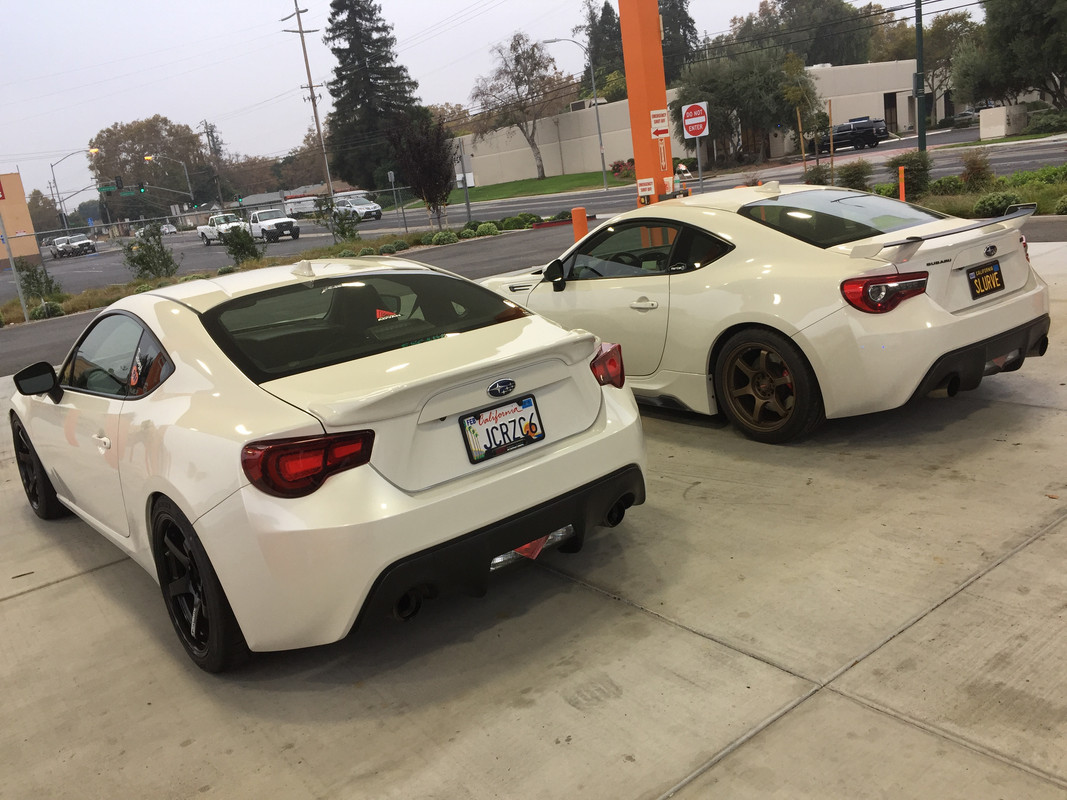 I believe cars are an extension of yourself. The way you maintain, modify, and build your car is a reflection of yourself. When building or modifying a car, you have to think about why you have chosen those parts, and what your goal and intention is. I've seen too many piss poor jobs where people threw together whatever parts they could find, or get for cheap. In the end, this results in a less than stellar vehicle. Now, I'm not saying you have to drop massive amounts of money into your car. Having a plan, and building your car with more thought and care put into your parts selection, will ultimately end you up with a better vehicle. Modifying it for the sake of modifying it, is not the right approach. Right off the bat, I booked an appointment with Neal @ The Racers Line. I'd been following the shop for a while, and this this is a completely new car and chassis to me, felt it was best to get the stamp of approval from an expert. 03/11/2017: Neal was able to squeeze me in on a Saturday, so my girlfriend and I drove up. Neal did a complete vehicle inspection, as well as an oil/tranny/diff fluid replacement. Turns out my intake hose was loose so he tightened that up. It was good to finally check out the under carriage of the car, and look for any other issues with it (there were none). We chit chatted about the twins, 240sx, and our experiences working in the auto industry. Neal's a really great guy and I look forward to bringing my car back to him for more work. :D https://s25.postimg.cc/w8vwl3si7/img_4820.jpg https://s25.postimg.cc/roebjwy6n/img_4821.jpg Now that the car had a seal of approval, it was time to start buying parts and changing everything. When modifying cars, I try and upgrade things in a manner that makes the most sense, and try to group together parts that compliment one another. 04/22/2017: For the BRZ, I wanted to change a few things right from the start. I hated the stock tail lights and side markers, so I replaced them with JDM TOM's Tails and OEM clear side markers. The TOM's I bought from a member on here, and the Clear side markers I bought from FT86SpeedFactory. https://s25.postimg.cc/9iwrs49an/img_5334.jpg https://s25.postimg.cc/7fzhk5iq7/img_53355.jpg https://s25.postimg.cc/nt99xzx8v/image.jpg 04/26/2017: Did a mini photoshoot with my buddy. https://s25.postimg.cc/b68je7ztb/dsc_0069.jpg https://s25.postimg.cc/9fpicqia7/dsc_0121.jpg https://s25.postimg.cc/46uheuzv3/dsc_0175.jpg https://s25.postimg.cc/d0ldvymtr/dsc_0189.jpg https://s25.postimg.cc/9rbk38o3z/dsc_0087.jpg https://s25.postimg.cc/y6js4an0v/dsc_0088.jpg https://s25.postimg.cc/btc1hhm33/dsc_0103.jpg 05/04/2017: A friend of mine got me a killer deal on some HKS Hipermax IV SP coilovers. https://s25.postimg.cc/du2l2bi8f/img_5437.jpg https://s25.postimg.cc/pujfpb09b/img_5449.jpg 05/10/2017: Finally got my vanity plate installed! Initials + Chassis code. :D https://s25.postimg.cc/rfdcg7wun/img_5565.jpg After this I decided to replace the front and rear bumpers. The mismatched paint, and over spray all over the grill/headlights/fog light housings was just annoying me. I got a great price on the parts, and a buddy of mine recommended a family friend for the paint. 05/17/2017: Paint was done. The car looks much much better. They did a great job masking off the black portions of the bumper, which was something I was really nit picky about. https://s25.postimg.cc/y3zwhgjdb/img_5720.jpg https://s25.postimg.cc/5lnseuk27/img_5714.jpg And of course I had to take it for a drive to break in the paint :D https://s25.postimg.cc/9yz6zqz2n/img_5909.jpg The exterior is now looking pretty good. Bright LED bulbs and nice tail lights. I replaced the HIDS with 5k bulbs, and have an Always-ON DRL kit and LED fog light bulbs on order as well, which should complete the exterior lighting upgrades. Next I wanted to tackle the interior. I was pretty dead set on a BRZ for the past year and a half, so I bought a JPM Coachworks interior set before they closed back on 10/2016. The only thing I wasn't able to grab was a one piece dash panel, so I would have to source that elsewhere. Thanks to the feedback on this forum, I knew the stock headunit was a joke. I decided with the very OEM-looking Joying unit. An android-based stock looking unit? Yes please! 05/20/2017: I was able to score the new 2GB Joying unit. Only downside is it has a CD slot, but no actual player. But I don't listen to cd's so not a total set back Removal of the stock deck: https://s25.postimg.cc/se55bbp5b/img_5523.jpg https://s25.postimg.cc/ovt5exo9b/img_5524.jpg Soldering all the connections on the new harness: https://s25.postimg.cc/c5ox1ugb3/img_5526.jpg It was at this time I confirmed that my reverse camera was aftermarket. Not a huge issue, but I did need to order a custom harness from autoharnesshouse.com in order to get it to work. For whatever reason, the metra ax-toy28swc harness DOES NOT fit into the vehicle's 28-pin, so word of caution. A few other people on this forum have had this issue, so I urge you to go through autoharnesshouse for this. https://s25.postimg.cc/iknxyin0v/img_5534.jpg Did I mention that I hate doing wiring? Becuase I do. https://s25.postimg.cc/4uteppzwv/img_5547.jpg Everything works! Hooray! https://s25.postimg.cc/ryvj1nkzz/img_5733.jpg 06/14/2017: Did a little photo shoot of the car in it's "mostly stock" configuration before the coils and other bits go on. https://s25.postimg.cc/twm7x38in/DSC_0024.jpg https://s25.postimg.cc/bh1qzp23z/DSC_0051.jpg https://s25.postimg.cc/fq6h1vd33/DSC_0049.jpg https://s25.postimg.cc/r2j2jnthr/DSC_0008.jpg https://s25.postimg.cc/eb4wd5rfj/DSC_0043.jpg https://s25.postimg.cc/3ob37qqzz/DSC_0015.jpg https://s25.postimg.cc/aerkh6lvj/DSC_0078.jpg https://s25.postimg.cc/4dtvk46z3/DSC_0075.jpg https://s25.postimg.cc/oxypilufz/DSC_0082.jpg https://s25.postimg.cc/65muf15rj/DSC_0088.jpg https://s25.postimg.cc/5g422ocxr/DSC_0101.jpg https://s25.postimg.cc/6v5mrelqn/DSC_0097.jpg 06/30/2017: Coil over install time! And