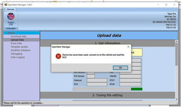 Openflash Tuning Tablet with USB Cable to Computer and OBDII cable