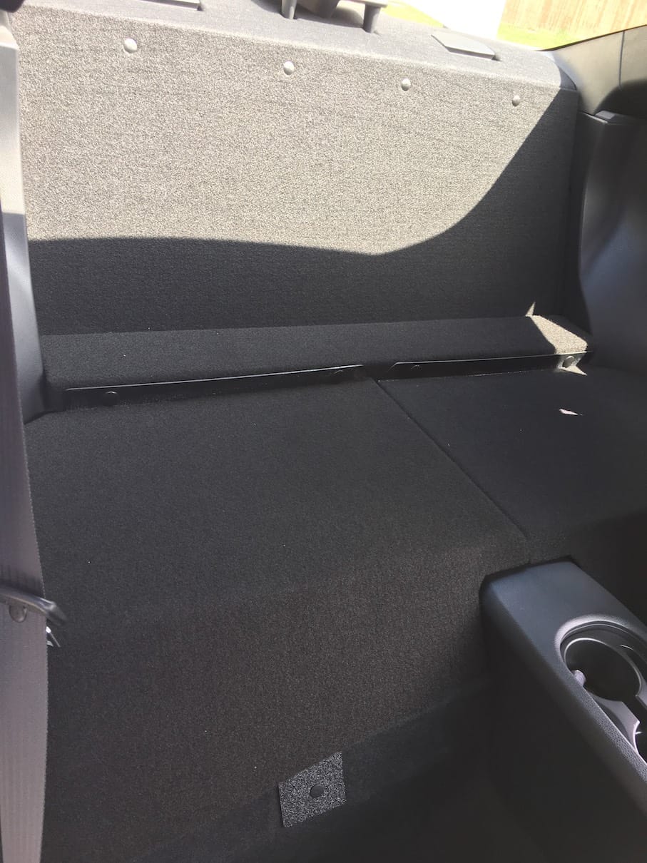 A bit belated, but here's pictures taken in the daylight of the rear seat delete that's gone in. I tried to find #100 Instapak Quick RT to put underneath but it was impossible to find so I went with #80 (next size down) and I'll be doing foaming underneath to reinforce the pieces that cover the seat section tonight after the Instapak arrives. I'm also planning to put the trunk mat back in by taking the bar off the rear strut tower brace and then cutting slits in the trunk mat. Since I have a BRZ Limited I also have the rubber all-weather cargo mat that goes over top. I'm still not sure what I'm going to do with it, I may leave it out.