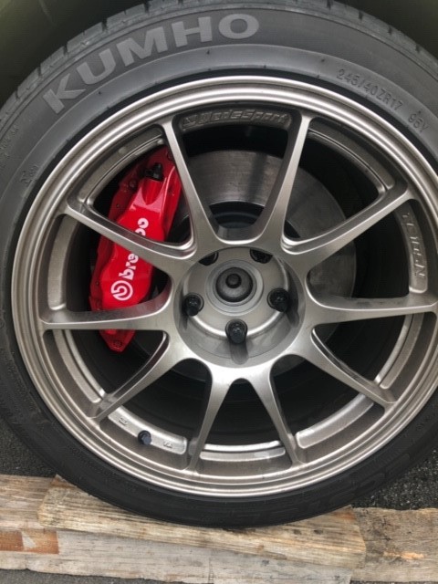 This is my first DIY write up so feel free to ask questions about things I might have missed. This write up is for replacing the stock 5x100 front hubs with aftermarket 5x114.3 hubs. This is practically a plug and play for those with big brake kits. I have a Series Yellow which came equipped with the Performance Package Brembo brakes, so I can only truly confirm that it will be an easy swap with these. Unfortunately for those that do not have any BBK, the OEM rotor hat is too small to fit over the 5x114.3 hubs and will require an upgrade in order to be able to install these (make sure to maintain proper brake bias if upgrading to a BBK). The hubs are from Parts Shop Max (https://store.partsshopmax.com/shop/...ct-description) and they have an outer diameter of 137 mm (approx. 5.4 in.) and the PP brake rotor hats have an internal diameter of approximately 147 mm (approx. 5.8 in.) allowing them to fit over the new hubs without any issues. I got them because I was having some rubbing at full lock due to being wide body I have 17x9 +10 wheels with 20mm 5x100 to 5x114.3 adapters which put me at an effective offset of -10. Special thanks to Tommy from Parts Shop Max who helped me out with the hub dimensions so that I could check if they would fit before purchasing them and with any other doubts I had about the process. Tools used and torque values for reassembly in applicable cases: *Use appropriate personal safety equipment to prevent any injuries.* 1/4 in. Drive 1. Ratchet 2. 10mm 3. 12mm 3/8 in. Drive Ratchet Torque Wrench 3 in. Extension 10mm - 5.5 ft-lb 12mm - 24 ft-lb 14mm - 48 ft-lb 19mm - 59 ft-lb 1/2 in. Drive Breaker Bar Ratchet Torque Wrench 3 in. Extension 14mm 19mm - 59 ft-lb 13/16 in. - 89 ft-lb 3/4 in. Attachment 178789 Other: Hamer Locktite Attachment 178790 Wire brush and/or small file Drill press Clamps (Size as needed) Wooden blocks (4 in. x 2 in. or as needed depending on individual configuration) 1/32 in. drill bit 1/2 in. drill bit (I started with the driver side (left) so all the images are according to that.) 1. Begin by jacking up your vehicle. This can be done in various ways so chose your preferred method, and remember, safety first. 2. Loosen lugs for the front wheel. I have aftermarket McGard two-piece spline lug nuts so I used the 1/2 in. drive breaker bar with the 3 in. extension and a 13/16 in. socket that fits over the adapter socket for the splines and safety lug nuts. Then remove them by hand. (You may need to use a ratchet if removing the lug nuts by hand is troublesome.) I used the case of my torque wrench pinched with the seat to depress the brakes and allow me to loosen the nuts without the tire spinning. 2a. For the adapters I use the 1/2 in. drive breaker bar with the 3 in. extension and a 3/4 in. socket to loosen the nuts on the adapter. I then remove them by hand. (You may need to use a ratchet if removing the lug nuts by hand is troublesome.) I again used the case of my torque wrench pinched with the seat to keep the brakes depressed and allow me to loosen the nuts without the rotor spinning and removed the case afterwards. 3. Turn the steering wheel to the side being worked at to point the caliper outwards from the wheel well. Attachment 178791 4. Remove the brake line hanger screw using the 1/4 in. drive ratchet with a 12 mm socket. This is done to allow the caliper to be set down on the floor in the next steps and prevent it from hanging off the brake line. Attachment 178792 5. Loosen the two (2) caliper bracket bolts using the 1/2 in. drive breaker bar with the 19 mm socket. Then remove them by hand (Use the 3/8 in. drive ratchet with the 19 mm socket if necessary). *1/2 in. drive ratchet is too large and will interfere when removing the top caliper bracket bolt with another bolt (red circle) when removing. Even when using the 3/8 in. drive ratchet there is a point where interference will occur and the ratchet needs to be removed to continue unscrewing by hand.* Attachment 178793 Attachment 178794 6. Set the caliper down on a block of wood or a towel to prevent any unwanted scratches or chips to the paint. If the vehicle is raised to a point where the caliper is tugging or hanging off the brake line, look for an alternative that best suits your situation and that prevents the caliper from tugging or hanging off the brake line. 7. Remove the brake disc from the hub. For those with Performance Package Brembo brakes, the brake line hanger bolt can be screwed into the small holes in the rotor hat and used to help separate the brake disc from the hub. Attachment 178795 8. Remove the speed sensor bolt using the 1/4 in. drive ratchet with a 10 mm socket and pull it out by grabbing onto the sensor’s plastic casing. Do not rotate the sensor as it has plastic tabs that help orient it and do not pull on the cable to prevent any damage to it. (I placed the socket on the bolt to help visualize where it is) Attachment 178796 9. Remove the four (4) hub bolts using the 3/8 in. drive ratchet with a 14 mm socket. (Use the 1/2 in. drive breaker bar with a 14 mm socket if necessary to loosen the bolts.) Attachment 178797 10. Remove the factory 5x100 hub. Use the hammer to gently nudge it if it gets stuck when pulling it out. Attachment 178798 11. Remove any excess dirt and rust from the factory hub and rotor hat to make assembly and disassembly smoother for the next steps. 12. Assemble the factory hub and rotor. 13. Place the provided template on the rotor using the studs as guides. Attachment 178799 14. Adjust the drill press to allow the assembly to fit. I did not have a punch that would fit through the guide holes for the 5x114.3 pattern in the template so I created pilot holes with the 1/16 in. drill bit. 15. Use wooden blocks to slightly elevate the hub and rotor assembly while keeping it level. This will make the assembly more stable since it will not allow it to pivot on the hub 16. Install the 1/16 in. drill bit in the drill press. 17. Align one of the guid