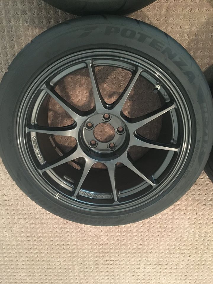 For Sale: WedsSport TC105N in Gunmetal, 5x100, 17x9, +35 offset with 245/40/17 Bridgestone Potenza RE71Rs mounted on them. Wheels and tires have 1,420 miles on them and are close to brand new. Were mounted on my FR-S for roughly 3 weeks. One wheel has two very small rock chips on it as indicated by the pictures, otherwise they’re perfect. Also have the boxes which the wheels came in if desired. Setup sticks like glue and looks great! Wheels also have Dorman clonable 974-315 TPMS sensors in them that can be re-programmed with your car’s sensor IDs if you know them, or I can provide the TPMS codes for the sensors the Scion in which they were programmed for. This will allow you to program your FRS/BRZ with the codes since the ECU will only hold one set of codes. Asking $1,800 obo. Pickup is preferred but will ship at buyer's expense. Will throw in a set of KICS R40 lugnuts that were used with the wheels if the price is right ($125 value). PM if interested. Thanks for looking. Attachment 182532 Attachment 182533 Attachment 182534 Attachment 182535 Attachment 182536 Attachment 182537 Attachment 182538 Attachment 182540 Attachment 182541 |