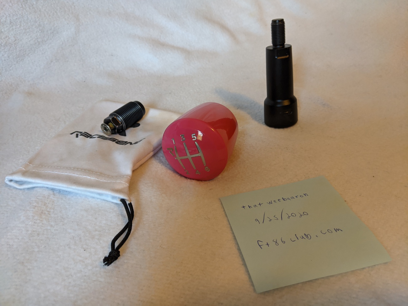 Ashiko(SOLD locally) - Yes it's pink. Used for ~2 months, sat in the box for ~6, selling because I wanted to do a cherry blossom style interior but changed my mind after buying this and a shift boot. No dents or paint defects other than a slight chip on the inside bottom from my metal reverse lockout (pictured). Asking $50 shipped within the continental US. Raceseng cover bag will also be included. All in the original box. Adapter - (SOLD locally) Doesn't look the best but still 100% functional, I highly recommend blue thread locker if you want to ever get if off the shaft again. Not deeply looking to sell this one, I'll most likely own another Raceseng knob in the future. Although if you need it, I'll sell it with the shift knob for an extra $5 Extender 50(SOLD across the pacific lol) - (+2in. to shift knob height and 12x1.25mm top and bottom) Used twice ever. Makes driving more comfortable, just not for me. Small chip near the top, it'll be covered by any shift knob with a cutout for the reverse lockout. Asking $28 shipped. Also in original boxAttachment 193169 Attachment 193170 Attachment 193171 Attachment 193172 Attachment 193173 Attachment 193174 Attachment 193175 Attachment 193176 |