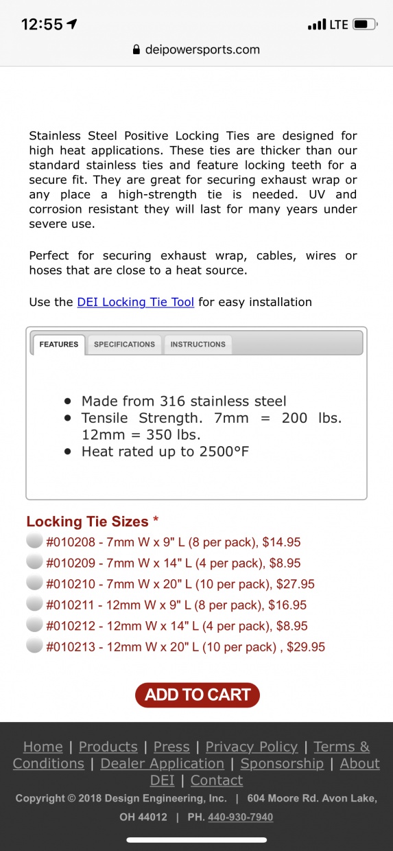 However i’d like to ask which among the lengths, and how many pieces of the steel positive locking ties will i need? Below are the list of choices from the DEI website. Any feedback would be appreciated! Attachment 194317 Sent from my iPhone using Tapatalk |