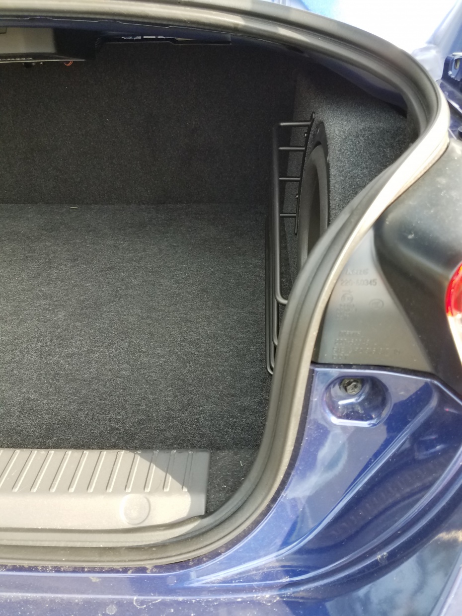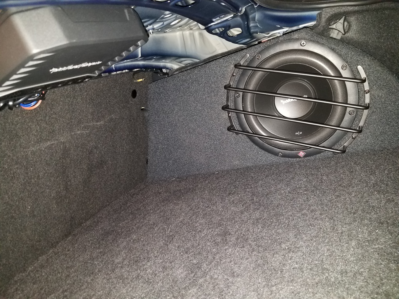 Attachment 199641 https://www.ebay.com/itm/11372440561...CABEgLio_D_BwE It’s made in Poland. It cost $219.00 with free shipping. They do make a left and right box. I bought the just the right. It took about a week to get to me in Florida. The build quality is terrific. It’s a 0.5 cubic foot box for a 10” sub. I looked for a 10’ sub that would work for this size box and came up with this Rockford Fosgate R2D4-10. Dual 4 ohm voice coils I hooked up in parallel for a 2 ohm load. Rated for 250 watts RMS at 2 ohms. https://www.amazon.com/Rockford-Fosg...ct_top?ie=UTF8 For an amp Rockford Fosgate R2-250X1 Mono amp. 250 watts into 2 ohms. 8 awg power wire with a 50 amp fuse. To get speaker level signals to the amp I got 2 Metra harnesses, 1 male, 1 female, soldered them together and tapped off the speaker signals from the head unit, before the factory door speaker amp, and routed that to the new sub-woofer amp. Metra adapters for amps 70-1761 & 71-1761 – Amazon. I made a bracket for the box to attach inside the trunk to the spot that one of the push pins are located. Bought some ¼-20 clip nuts, and a threaded knob and located to the push pin spots. One by the trunk opening, and another by the back seat. Got the idea from the OEM Audio+ install videos. Attachment 199642 Mounted the amp upside down under the brake light. Total price, a little over $500. I think it adds what was needed. |