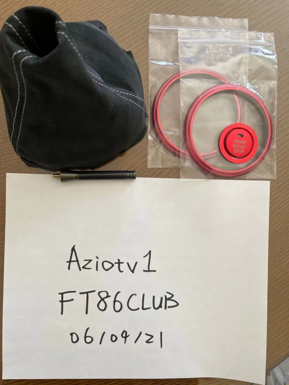 Illumaesthetic GR style gauge cluster face for BRZ (on car for about 1000 miles), $110 3 pieces carbon fiber gauge cluster face with FRS logo (on car for about 2000 miles), $90 Front License Plate Relocation Kit, laser cut plate aluminum, $10 Diode Dynamics Tail as Turn Module, $30 99.9% New Alcantara (9002 Anthracite) Shift Boot with Light Gray Stitching 6AT, $40 Brand new red AC covers + used red start button covers (might need new 3M), $20 Used Whiteline camber bolts, $20 Paypal only. More part out coming soon! Stay tuned! Attachment 201505 Attachment 201510 Attachment 201511 Attachment 201500 Attachment 201499 Attachment 201501 Attachment 201502 Attachment 201503 Attachment 201504 Attachment 201506 Attachment 201507 Attachment 201508 Attachment 201509 Attachment 201512 |