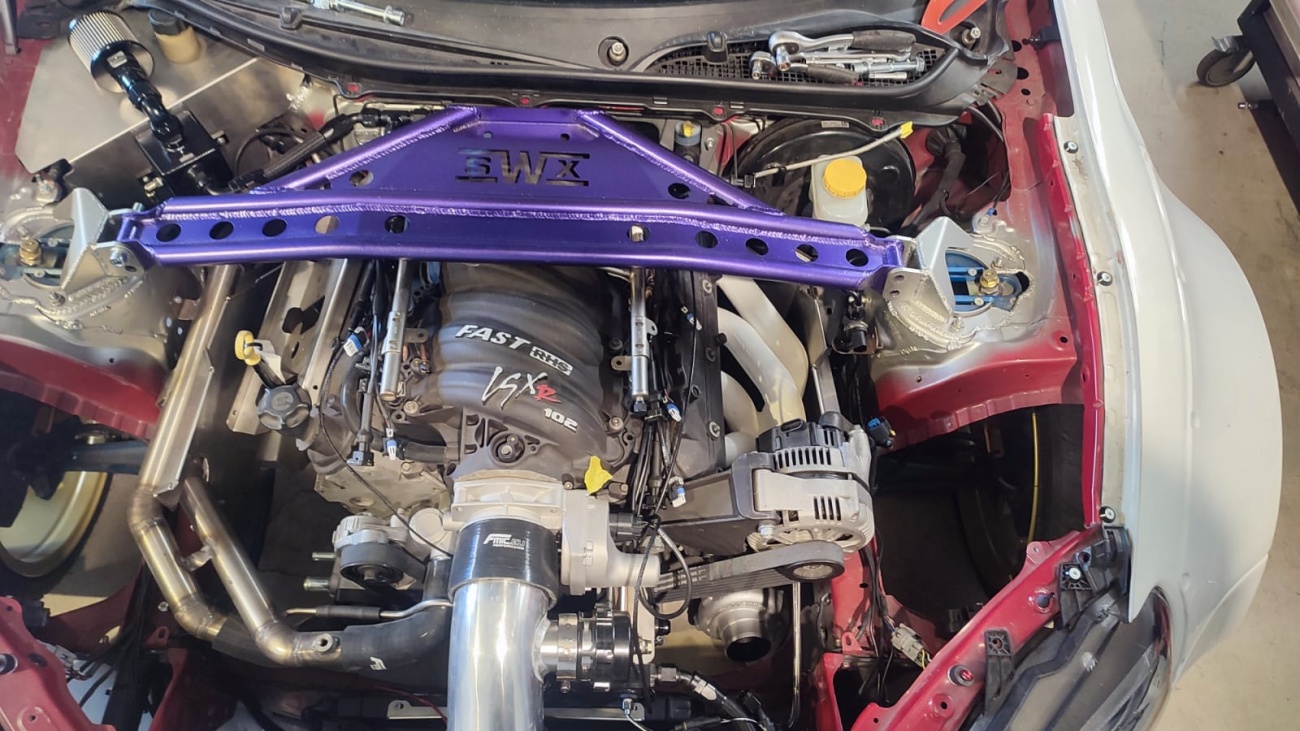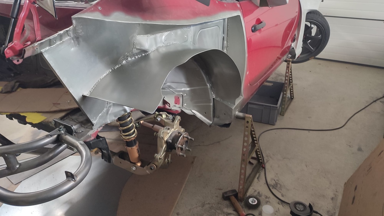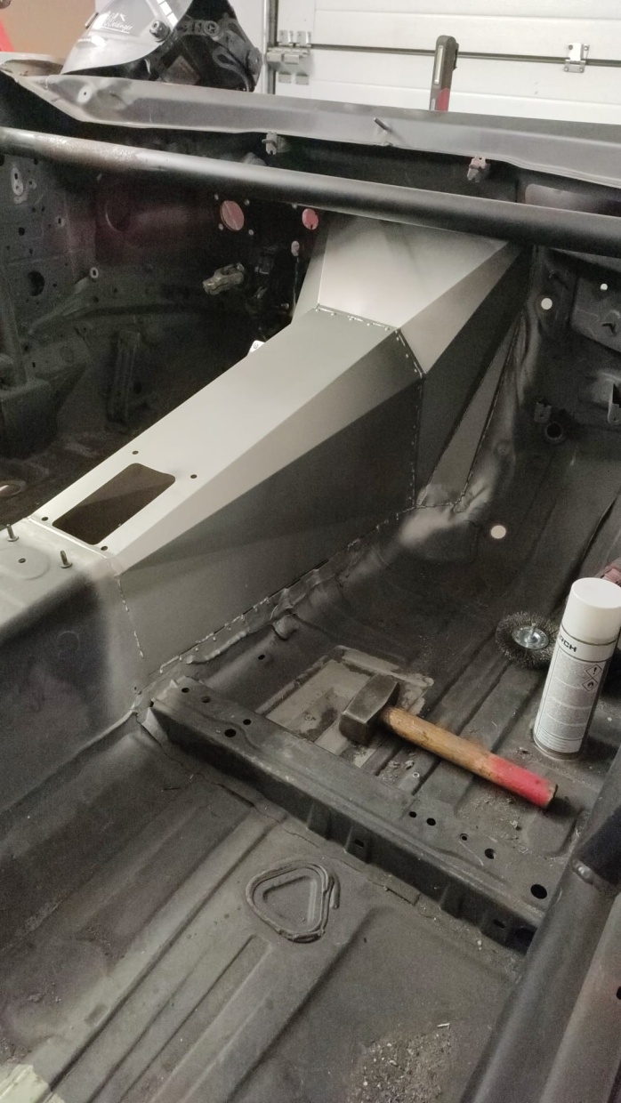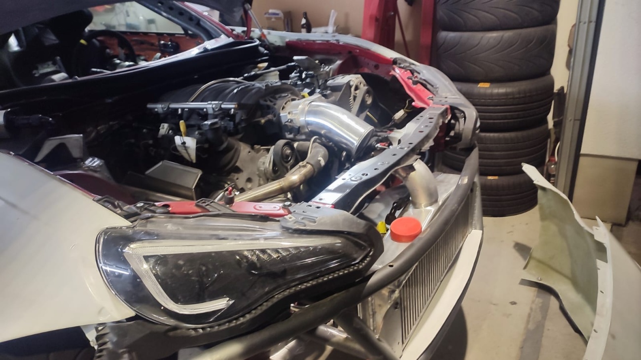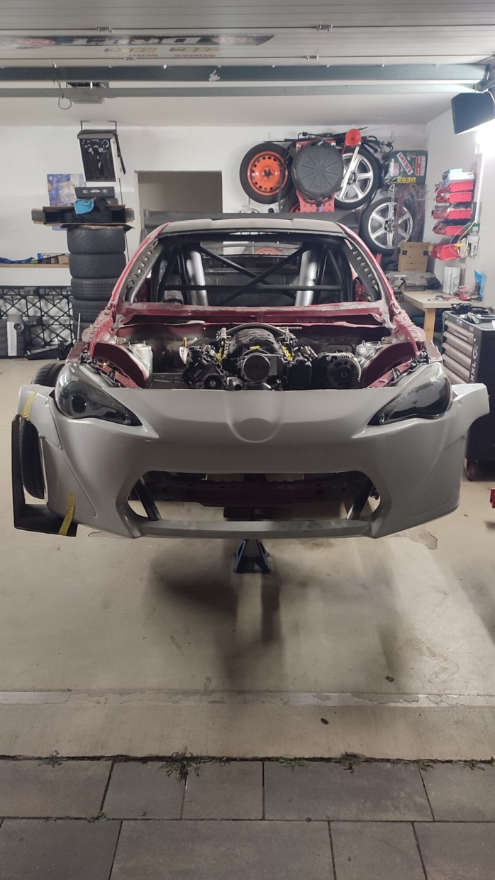 Completed the body panels, hood and also started with pre-installation of some show-elements. Attachment 228250 Installed the tire sprayer system. I had the idea to use some dead space to save weight and Installation space in the more packed areas and decided for one tank per side solution hidden under the quarter panel. Though, this added quiet more complexity and work then expected. Think I wouldnt do it that way for a second time. Attachment 228248 Prepared the FMIC and further cold side routing in preparation for the second season. Car still planned to be NA for the roll out season at this point. Attachment 228247 Attachment 228249 Made some progress with the exhaust. Still quiet some parts are missing. Still Im happy to have a good part of all the underbody tubing done, from break lines, water lines, fuel lines to a good portion of the exhaust. Attachment 228246 Completely redone the electrics. Everything packed in fire retarting heat shrink. MaxxECU Race installed and connected to the chassis harness, engine harness in place but Not fully connected yet. Electrics are pretty far, but still some minor changes and tweaks are on the list. Also some things like backup light and upper break lights are not yet connected or Not even in the car for now. Attachment 228245 Started development for a twin turbo low mount LS header for the 86 chassis. Something wandering back and forth in my head since years, actually since my first LS swap 86. The room underneath the two banks combined with wide frame of the Boxer chassis is literally begging for two turbines. Attachment 228243 Since I was on my way now, I decided to go all in for the twin turbos right away and printed a plastic dummy for final fitment test. Worked out well and now my CNC laser cut welding jig is in its way. Also the collector tubing sections will be pre-notched on a tube laser based on the CAD model. Never tried it that way before, but I think it's time to try something new. Attachment 228242 Also finished my custom strut tower brace with integrated V-bars. Dont like to skip the V Like many swappers do. Manged to keep the factory bars in my street car. Though, for the track setup with higher intake manifold and more backward engine placement, I had to find another way to do it. A flange for mating the center connecting point will be welded to the firewall once the car is disassembled for the paint job. Attachment 228241 Last but not least one of the rare chances to see the nearly final shape of the car Düring the ongoing build process. Most of the time I also see it in jack stands only. So also for me it's still a nice chance to get an Impression of the final product. Attachment 228244 |