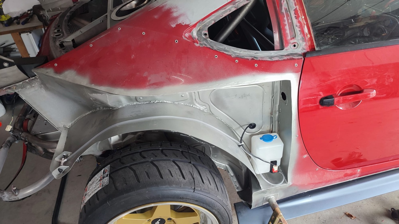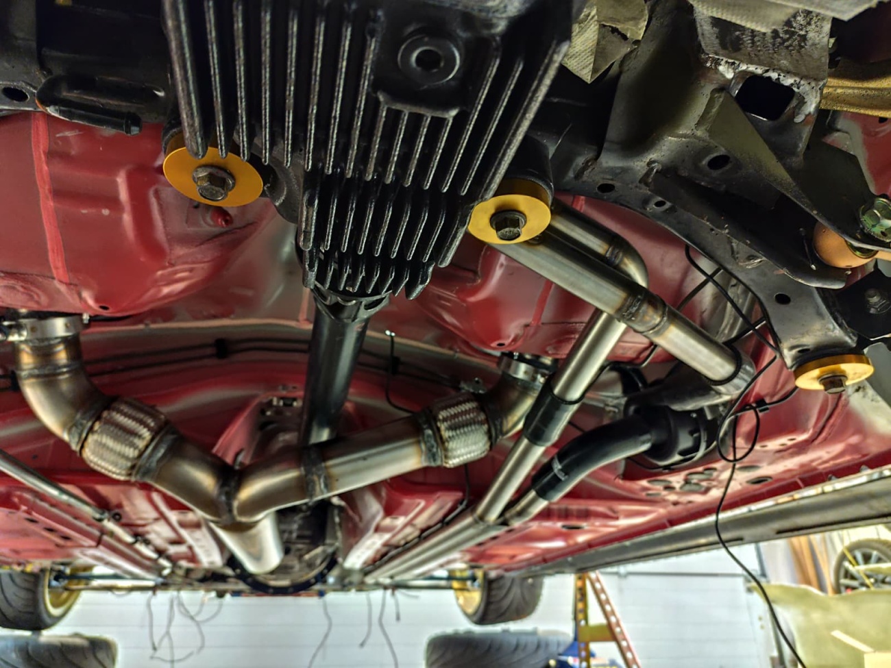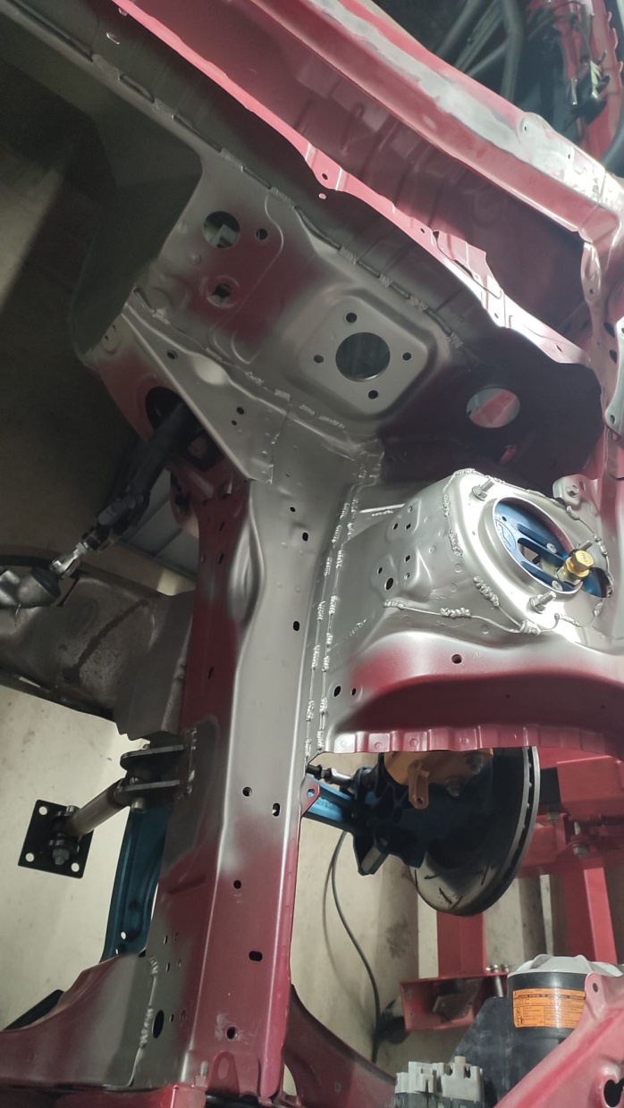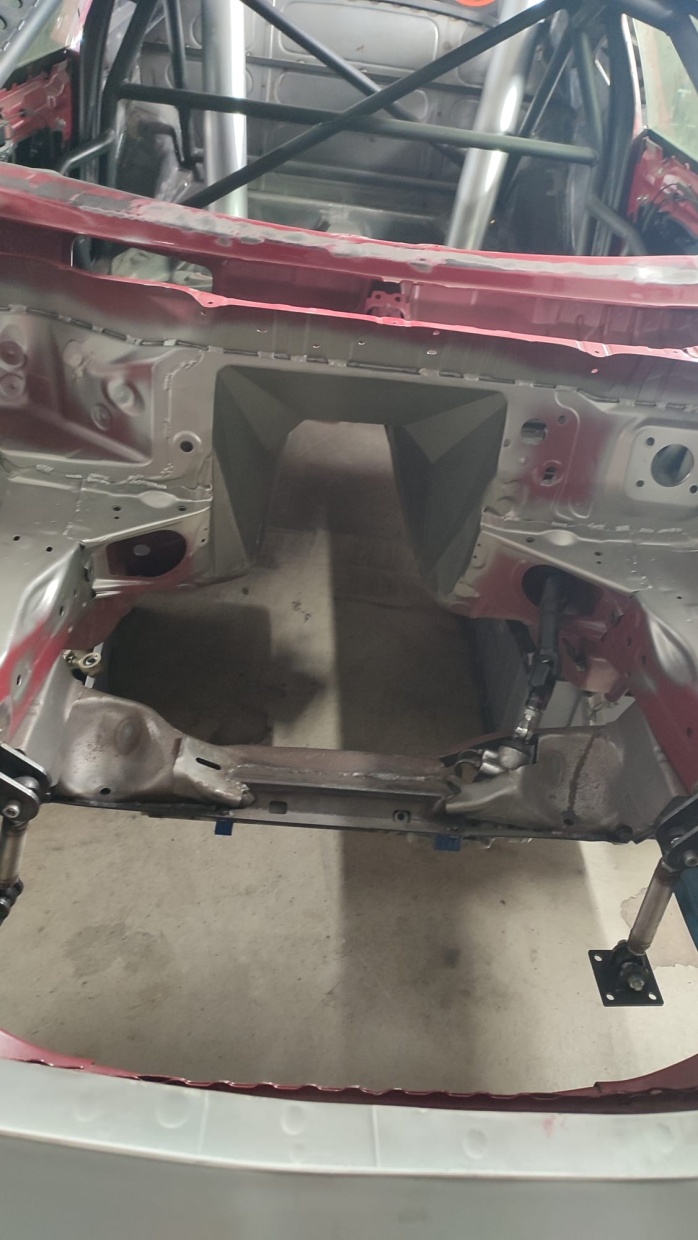 Completed the body panels, hood and also started with pre-installation of some show-elements. Attachment 228250 Installed the tire sprayer system. I had the idea to use some dead space to save weight and Installation space in the more packed areas and decided for one tank per side solution hidden under the quarter panel. Though, this added quiet more complexity and work then expected. Think I wouldnt do it that way for a second time. Attachment 228248 Prepared the FMIC and further cold side routing in preparation for the second season. Car still planned to be NA for the roll out season at this point. Attachment 228247 Attachment 228249 Made some progress with the exhaust. Still quiet some parts are missing. Still Im happy to have a good part of all the underbody tubing done, from break lines, water lines, fuel lines to a good portion of the exhaust. Attachment 228246 Completely redone the electrics. Everything packed in fire retarting heat shrink. MaxxECU Race installed and connected to the chassis harness, engine harness in place but Not fully connected yet. Electrics are pretty far, but still some minor changes and tweaks are on the list. Also some things like backup light and upper break lights are not yet connected or Not even in the car for now. Attachment 228245 Started development for a twin turbo low mount LS header for the 86 chassis. Something wandering back and forth in my head since years, actually since my first LS swap 86. The room underneath the two banks combined with wide frame of the Boxer chassis is literally begging for two turbines. Attachment 228243 Since I was on my way now, I decided to go all in for the twin turbos right away and printed a plastic dummy for final fitment test. Worked out well and now my CNC laser cut welding jig is in its way. Also the collector tubing sections will be pre-notched on a tube laser based on the CAD model. Never tried it that way before, but I think it's time to try something new. Attachment 228242 Also finished my custom strut tower brace with integrated V-bars. Dont like to skip the V Like many swappers do. Manged to keep the factory bars in my street car. Though, for the track setup with higher intake manifold and more backward engine placement, I had to find another way to do it. A flange for mating the center connecting point will be welded to the firewall once the car is disassembled for the paint job. Attachment 228241 Last but not least one of the rare chances to see the nearly final shape of the car Düring the ongoing build process. Most of the time I also see it in jack stands only. So also for me it's still a nice chance to get an Impression of the final product. Attachment 228244 |
