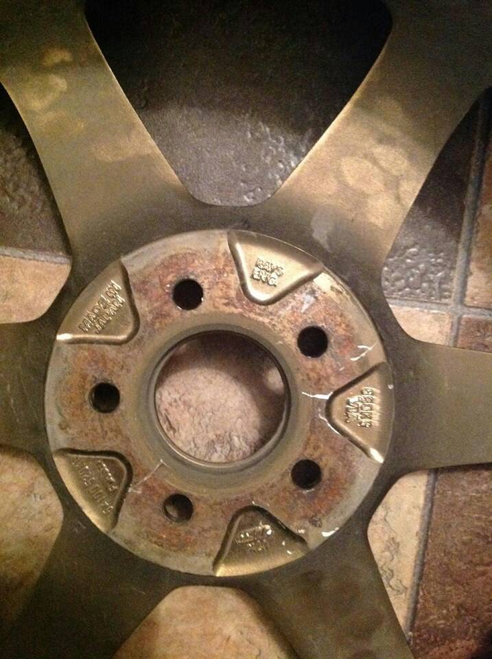 There should be stamping on the wheel that says forged mono block. If you're able to, find the weight. If they're like 25lbs without tires, they're definitely cast which means they're fake. I've never seen a RAYS Engineering sticker like that. All the ones that I have seen have had both English and JP on them. |