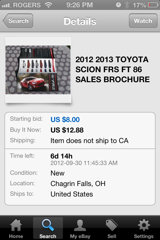 I'll ship to CA and include free shipping. I may even throw in international for people across the pond who don't have access to FR-S brochures. Really can bump up the price about 50-75% then. It'll be a rare novelty.