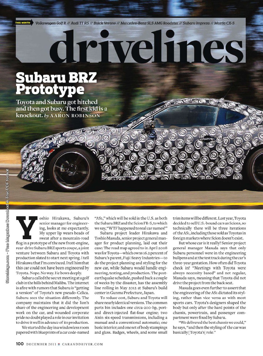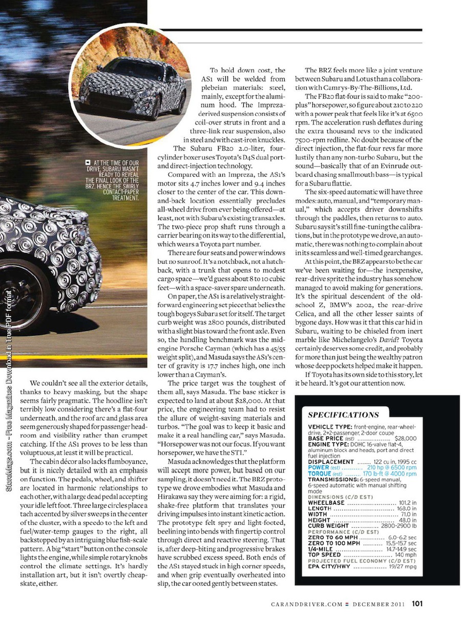 The first review of the Subaru BRZ prototype is in from Car and Driver