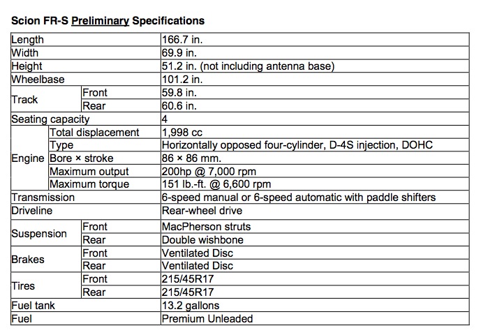 Scion FR-S OFFICIALLY REVEALED (Details, Specs + Live and Press Photos)