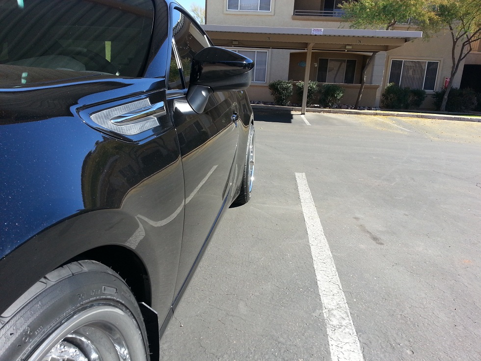 Hi guys. Thought I'd share my fitment. 18x9 +25 all around with 225/40/18 Federal 595SS. Car has about a 1" drop with -4 camber in front and -1 camber in rear. I plan on dropping a bit more and fiddling with the alignment, but here are pictures as it sits now: Attachment 26059 Attachment 26060 Attachment 26061 Attachment 26062 Attachment 26063 Attachment 26064 |