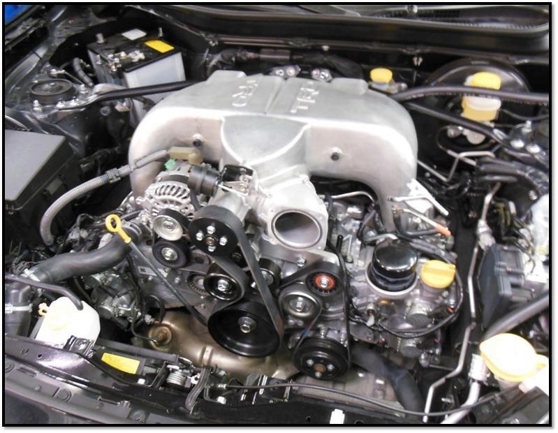 Would love to see what's going on inside that giant manifold! Looks like a twin screw SC. Are those plugs on either side for a liquid to air charge cooler? Also interesting that they deleted the AC Compressor and went outward from the main belt with a secondary drive belt devoted to the SC pulley.