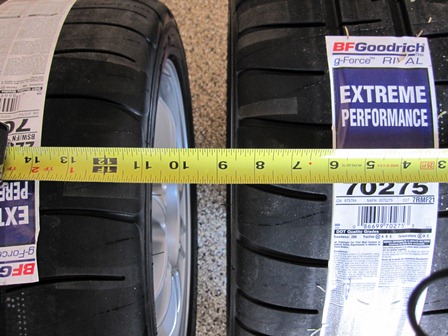 New Set-up for the BRZ.:burnrubber: Enkei RPF1 17x7 42 BF Goodrich G-force Rivals 225/45/17 Attachment 29138 Attachment 29139 Attachment 29140 Front view. Attachment 29141 Rear view. Attachment 29142 Enkei RPF1 17x7 & new BF Goodrich Rivals 225/45/17, 37.8lbs. Attachment 29144 Stock wheel and tire weight 40.6Lbs ~2000miles on tires. Attachment 29145 BF Goodrich Rivals 225/45/17 vs Stock Michelins 215/45/17 Attachment 29146 Tire tread width came in right at 8.5 inches. Attachment 29147 |