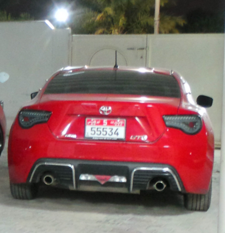 In this thread I'm going to post the upgrades done to my car First of all, I wasnt happy with her name (86) :mad0259: it deserve something better something nicer im not gonna make new name for it. I like the European name GT86, so I desided to buy GT86 badge. So its gonna be GT86 :thumbup: instead of just 86 :thumbdown:. Attachment 30159 Attachment 30160 Attachment 30161 Attachment 30226 Attachment 30227 :w00t: 08-03-2013 Just added temporary exhaust tip Attachment 30382 02-05-2013 latest pics Attachment 35994 Attachment 35995 Attachment 35996 Attachment 35997 02-06-2013 10 days ago I added special touch on my car. See it below Attachment 39350 This photo was captured in "Fast & Furious extreme car park" event in Dubai 2 days ago And finally my exaust is here, Attachment 39351 Attachment 39352 Attachment 39353 This thread will keep growing with my updates |