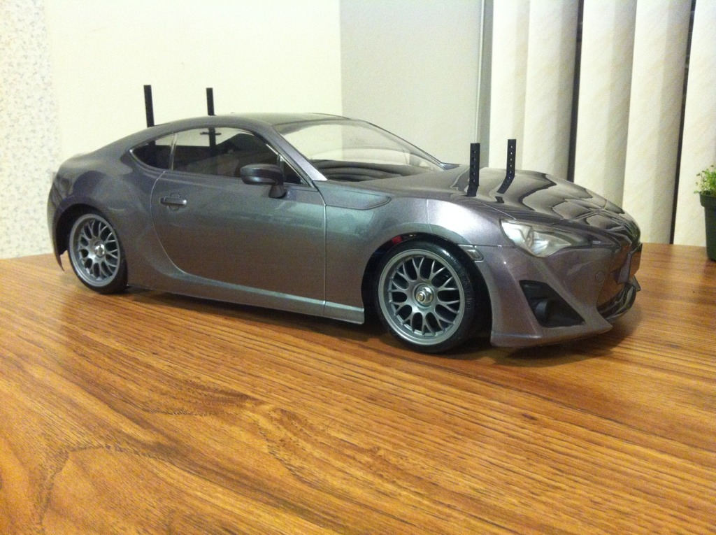 Thanks guys. This is what this body looked like before I realized that I used the wrong paint. The new one will have the same gun metal grey paint, but there will be a few layers of smoke over it to get the darkness closer to my Asphalt (Dark Grey Metallic for the BRZ heads). The turn signals will be exposed instead of cleared. I'll go all out with the stickers this time too.